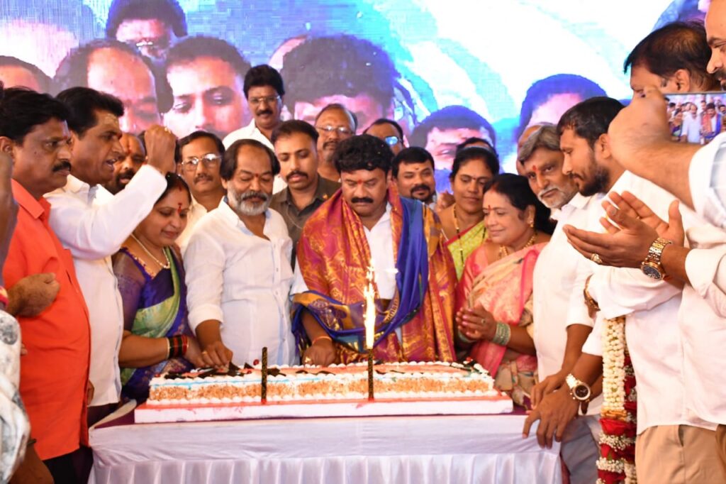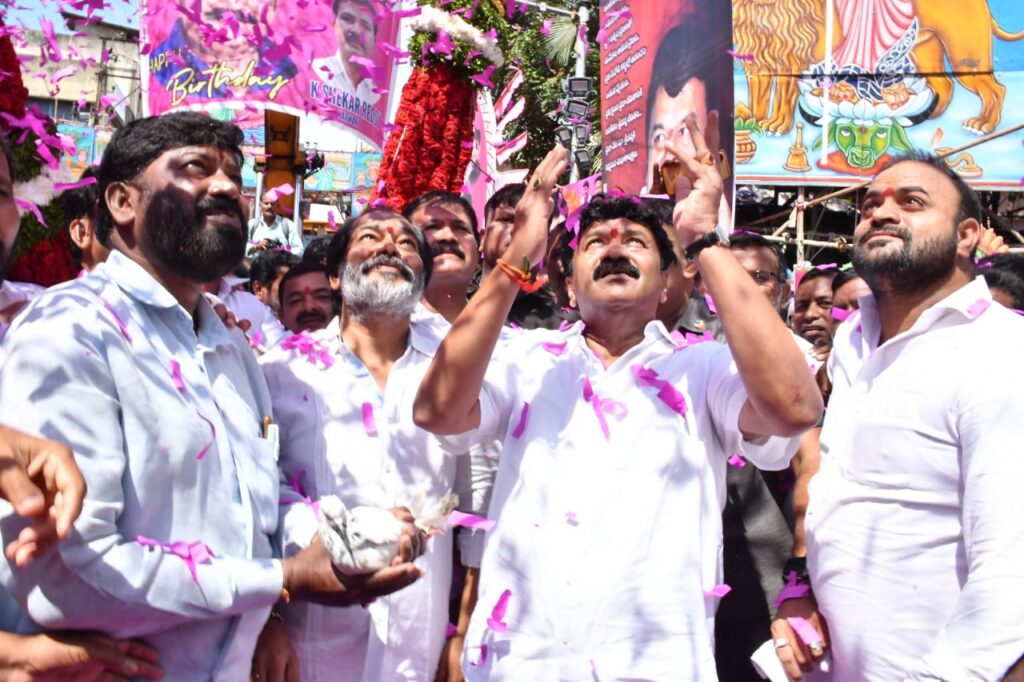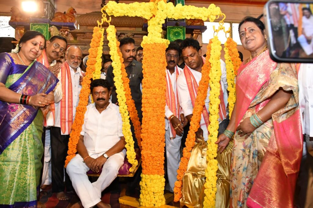 అమ్మవారికి పూజలు నిర్వహించిన అనంతరం పండితులు వేద మంత్రాలతో ఆశీర్వచనం చేశారు. ఆలయ ఆవరణలో పార్టీ నాయకులు, ఆలయ మాజీ సభ్యుల ఆధ్వర్యంలో ఎమ్మెల్యే తలసాని శ్రీనివాస్ యాదవ్ కు తులభారం నిర్వహించారు. తదనంతరం ఆలయం బయట ఏర్పాటు చేసిన కార్యక్రమంలో భారీ కేక్ ను కట్ చేశారు. కార్యక్రమానికి సనత్ నగర్ నియోజకవర్గంతో పాటు నగరంలో ని వివిధ ప్రాంతాలు, ఇతర జిల్లాల నుండి వచ్చిన పార్టీ నాయకులు, అభిమానులు, మిత్రులు ఎమ్మెల్యే తలసాని శ్రీనివాస్ యాదవ్ ను పూలమాలలు, శాలువాలు, పుష్పగుచ్చాలతో సన్మానించి పుట్టినరోజు శుభాకాంక్షలు తెలిపారు. ముందుగా పద్మారావు నగర్ బిఆర్ఎస్ పార్టీ ఇంచార్జి గుర్రం పవన్ కుమార్ ఆధ్వర్యంలో ప్రత్యేకంగా రూపొందించిన తలసాని శ్రీనివాస్ జీవిత నేపధ్యం, రాజకీయ ప్రస్థానం, సాధించిన విజయాలను వివరించే డాక్యుమెంటరీ ని ప్రదర్శించారు. అదేవిధంగా బేగంపేట డివిజన్ కు చెందిన నాగరాజు గౌడ్ ఆధ్వర్యంలో వికలాంగులకు ట్రై సైకిళ్లను అందజేశారు. కార్వాన్ కు చెందిన నాయకుడు శేఖర్ రెడ్డి ఆధ్వర్యంలో భారీ పూలమాలను క్రేన్ సాయంతో ఎమ్మెల్యే తలసాని శ్రీనివాస్ యాదవ్ కు అలంకరించారు. కార్యక్రమంలో కార్పొరేటర్ లు టి. మహేశ్వరి, కుర్మ హేమలత, మాజీ కార్పొరేటర్ లు అత్తిలి అరుణ గౌడ్, అత్తిలి మల్లిఖార్జున్ గౌడ్, కె. కిరణ్మయి, మాజీ కార్పొరేషన్ చైర్మన్ లు దూదిమెట్ల బాలరాజ్ యాదవ్, గజ్జెల నగేష్, నాంపల్లి నియోజకవర్గ ఇంచార్జి ఆనంద్ గౌడ్, డివిజన్ అధ్యక్షులు అత్తిలి శ్రీనివాస్ గౌడ్, కొలన్ బాల్ రెడ్డి, శ్రీనివాస్ గౌడ్, వెంకటేషన్ రాజు, నాయకులు తలసాని స్కైలాబ్ యాదవ్, శ్రీహరి, కె.కిషోర్ కుమార్, నాగులు, ఏసూరి మహేష్, లక్ష్మీపతి, మహేష్ యాదవ్, ప్రేమ్, బాలరాజ్ యాదవ్, శైలేందర్, సాగర్ ముదిరాజ్, ఆంజనేయులు, శ్రీకాంత్ రెడ్డి, శేఖర్, కుమార్ యాదవ్, రామ్ నివాస్ బన్సాల్, పీయూష్ గుప్తా, మహేందర్, ఆనంద్ పాటిల్, చంద్ర ప్రకాష్, గణేష్, సతీష్ తదితరులు పాల్గొన్నారు.
