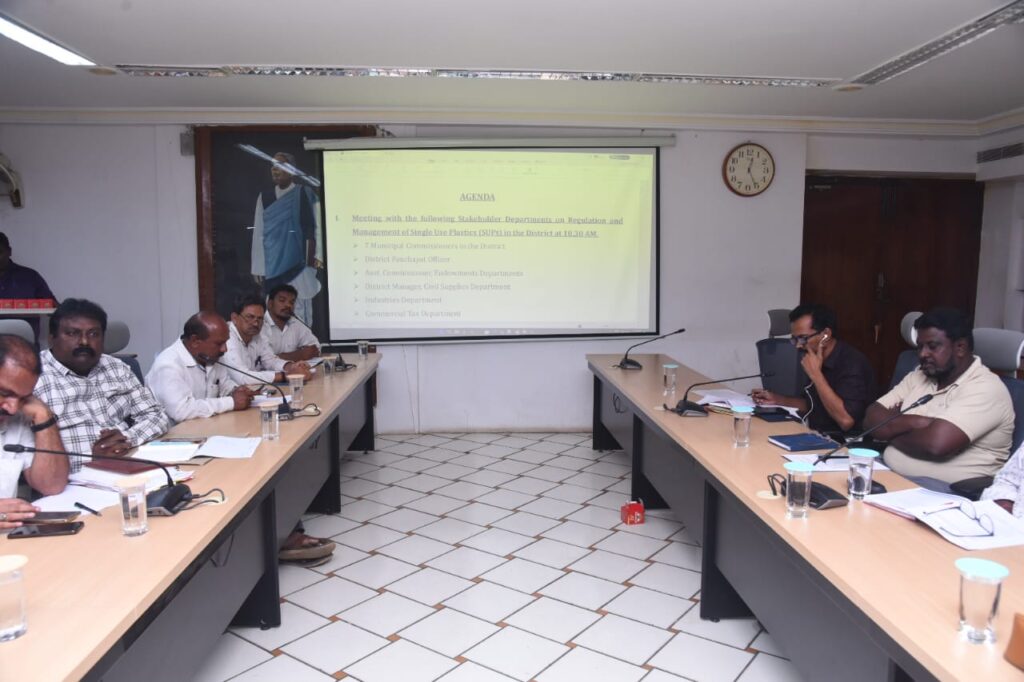 కలెక్టర్ మాట్లాడుతూ సింగిల్ యూజ్ ప్లాస్టిక్ వినియోగ నివారణ, వివిధ రంగాల ద్వారా వచ్చే కాలుష్యాన్ని నివారించేందుకు రాష్ట్ర కాలుష్య నియంత్రణ మండలి చైర్ పర్సన్ చేసిన సూచనలను సంబంధిత శాఖలు సమన్వయంతో అమలు చేసేలా చర్యలు తీసుకుంటామని చెప్పారు.