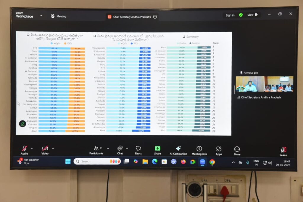 ఆదేశించారు. గురువారం అమరావతి సచివాలయం నుంచి అన్ని జిల్లాల కలెక్టర్లతో ఆయన వీడియో కాన్ఫరెన్స్ నిర్వహించారు. సీజనల్ వ్యాధులు ,మందుల పంపిణీ, దేవాలయాల్లో మౌలిక సదుపాయాలు, ప్రధాన మంత్రి ఆదర్శ్ గ్రామ రోజున ప్రగతి, ఎస్సి ఎస్టి అత్యాచార నిరోధ చట్టం కింద బాధితులకు పరిహారం చెల్లింపు, ఎస్సి కార్పొరేషన్ ద్వారా తీసుకున్న వాహనాలు, రెవిన్యూ సేవలు, ఎన్టీఆర్ భరోసా పెన్షన్ల రీ అసెస్మెంట్, తదితర అంశాలపై జిల్లాలవారీగా సమీక్షించారు. కలెక్టర్ పి.రాజాబాబు, జాయింట్ కలెక్టర్ ఆర్.గోపాలకృష్ణ, డిఆర్ఓ బి.చిన ఓబులేసు హాజరయ్యారు. పరిసరాల శుభ్రత పై ప్రజలకు విస్తృత అవగాహన కల్పించడంతోపాటు సీజనల్ వ్యాధులు ప్రబలకుండా క్షేత్రస్థాయిలో వైద్య సిబ్బంది నిరంతర పర్యవేక్షణ అవసరమని సీఎస్ చెప్పారు. ప్రజలకు అందుతున్న వివిధ సేవలపై ఐవిఆర్ఎస్ ద్వారా ప్రభుత్వం అభిప్రాయాలను సేకరిస్తున్నందున విధుల నిర్వహణలో నిర్లక్ష్యం ఉండకూడదు అని స్పష్టం చేశారు. రెవెన్యూ సర్వీసులు, దర్శన సమయాలలో దేవాలయాల్లో అందుతున్న సేవలు, ఎన్టీఆర్ భరోసా సామాజిక పెన్షన్ల విషయంలో జరుగుతున్న రీ అసెస్మెంట్, ఎస్సీ ఎస్టీ అత్యాచార నిరోధక చట్టం కింద బాధితులకు పరిహార పంపిణీలో జాప్యము, నిర్లక్ష్యం ఉండకూడదు అన్నారు.