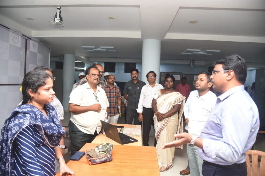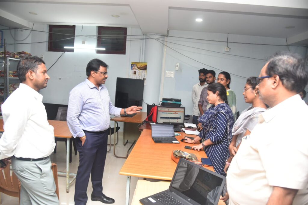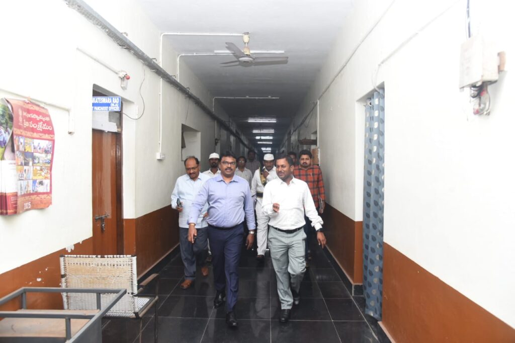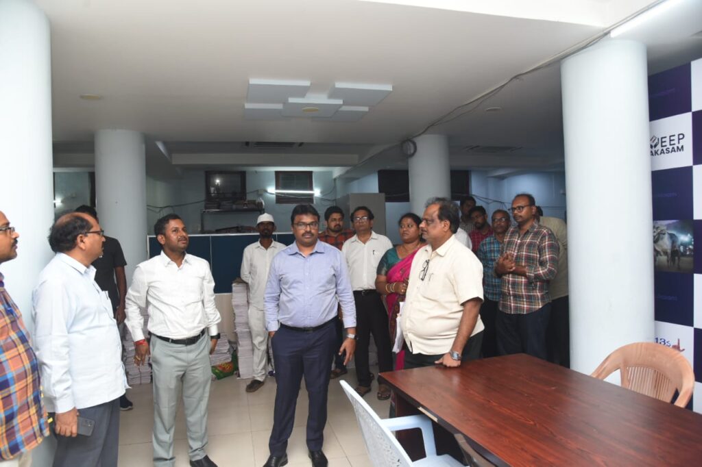 జిల్లా కలెక్టర్ పి.రాజాబాబు ప్రకాశం భవనంలోని వివిధ విభాగాలను శుక్రవారం క్షుణ్ణంగా పరిశీలించారు. పి.జి.ఆర్.ఎస్ ( మీకోసం ) ఆడిట్ టీము, సూపర్ జీఎస్టీ – సూపర్ సేవింగ్స్ విభాగం పనిచేస్తున్న ఆఫీసులను జాయింట్ కలెక్టర్ ఆర్.గోపాలకృష్ణ, డిఆర్ఓ బి.చిన ఓబులేసులతో కలిసి తనిఖీ చేశారు. రాష్ట్రస్థాయిలో ముఖ్యమంత్రి కార్యాలయం ఉన్న సచివాలయంలో ఏర్పాటు చేసిన ఆర్టిజిఎస్ మాదిరిగా కలెక్టరేట్ లోనూ సమీకృత కమాండ్ కంట్రోల్ కేంద్రాన్ని ఏర్పాటు చేసేందుకు అనువైన గది కోసం పరిశీలించారు. వీరి వెంట కలెక్టరేట్లోని వివిధ సెక్షన్ల సూపరింటెండెంట్లు ఉన్నారు.