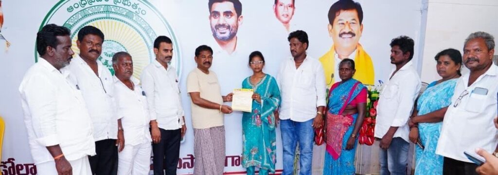 మంత్రి డా. డోలా బాల వీరాంజనేయస్వామి అన్నారు. ఈ సందర్భంగా కార్యకర్త మాధవ నోసినా కుటుంబ సభ్యులు సీఎం చంద్రబాబు నాయుడు, మంత్రులు నారా లోకేష్, డా. డోలా బాల వీరాంజనేయ స్వామి కి కృతజ్ఞతలు తెలిపారు.