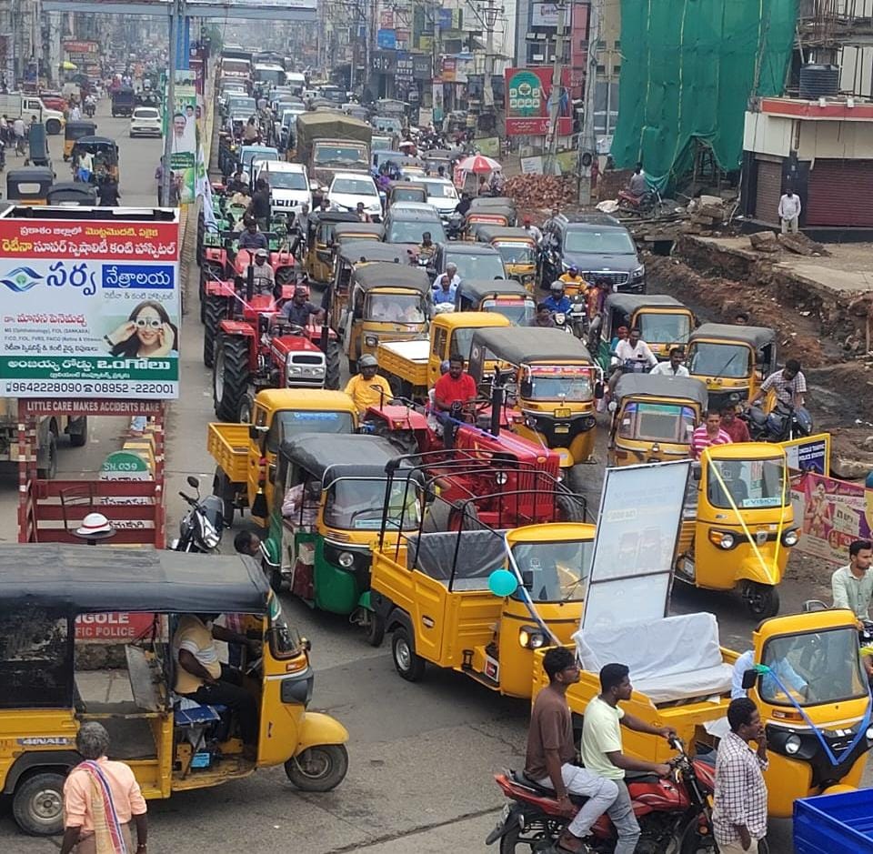 దాదాపు 2.75 లక్షల జీఎస్ టి నేడు 18శాతం తగ్గి 1.4 లక్షల పన్ను తగ్గిందని తెలిపారు. దీని వలన చిన్న వాహనదారులు లబ్ధిపొందుతున్నారని చెప్పారు. వికాస్ విశ్వాస్ – నమ్మకమైన అభివృద్ధి …అనే నినాదంతో వాహనాలపై జీఎస్ టి తగ్గుదలను తెలియజేస్తూ చిన్న వాహనాలతో ర్యాలీ నిర్వహించారు. మేయర్ గంగాడ సుజాత, అర్డీఓ కళావతి, డిప్యూటీ కమర్షియల్ ట్యాక్స్ ఆఫీసర్ డి సత్యప్రకాశ్, మోటార్ వాహన తనిఖీ అధికారులు, కార్యాలయ సిబ్బంది, డీలర్స్ పాల్గొన్నారు.