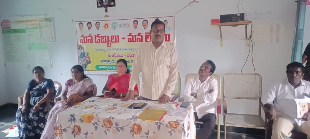 అన్నారు. తాళ్లూరు వెలుగు కార్యాలయంలో మంగళవారం ‘మన డబ్బులు – మన లెక్కలు ‘ గురించి స్వయం సహాయక సంఘాల సభ్యులకు అవగాహన కార్యక్రమం నిర్వహించారు. తాళ్లూరు ఎం ఎం ఎన్ అధ్యక్షురాలు సుజాత అధ్యక్షతన సమావేశం నిర్వహించారు. సిఆర్పి లు ఈశ్వరి, సరళ లు పాల్గొని పొదుపు సంఘాల సభ్యులకు సంస్థాగత నిర్మాణం గురించి రుణాలు పొందిన తర్వాత వాటి తిరిగి చెల్లింపు చెయ్యాల్సిన విధానం, సకాలంలో చెల్లిస్తే లభించే లబ్ధి వంటిని వివరించారు. రణాల నగదు చెల్లించినట్లయితే సంబంధిత గ్రూపు ఎంత నగదు ఇంకా చెల్లించాలి అనే అంశం కూడ వాయిన్ రూపంలో సెల్ కు మెసేజ్ వస్తుందని చెప్పారు. ఎపీఎం దేవరాజ్, సీసీలు మోహన రావు, కోటేశ్వరరావు, అకౌంటెట్ కుమారి, ఈ -నారీలు పాల్గొన్నారు.