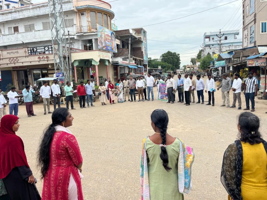 మొంథా తుఫాన్ పై జిల్లా కలెక్టర్ రాజాబాబు ఆదేశాలతో అన్ని శాఖల అధికారులు అప్రమత్తమైనానరు. గతంలో ఎన్నడూ లేని విధంగా ముందస్తుగా తుఫాన్ పై వినృత ప్రచారం కల్పించారు. మండల ప్రత్యేక అధికారి కుమార్, తహసీల్దార్ రమణా రావు, ఎంపీడీఓ అజిత, ఎస్పై మల్లిఖార్జున రావు, మండల విద్యాశాఖాధికారి జి సుబ్బయ్య, ఎంఈఓ -2 నుధాకర రావులు, విద్యుత్, ఆర్ డబ్ల్యు ఎన్, హౌసింగ్ ఎఈ లు రామక్రిష్ణ, వాలి, హనుంతరావు, ఎపీఓ వెంకట రావు, ఎపీఎం దేవరాజ్, డిప్యూటీ ఎంపీడీఓ నాగమల్లేశ్వరి, గ్రామ కార్యదర్శులు, విఆర్డీఓలు నచివాలయ సిబ్బంది, అంగన్వాడీ కార్యకర్తలు పాల్గొని తుఫాన్ పై ర్యాలీ నిర్వహించి, వెల్లంపల్లి సెంటర్లో మానవహారం ఏర్పాటు చేసి నమర్థవంతంగా, అవగాహనతో తుఫాను ఎదుర్కోవాలని పిలుపు నిచ్చారు. వాతావరణ శాఖ సూచనలు ఎప్పటికప్పుడు పాటిస్తూ రైతులు అవగాహనతో ముందుకు సాగాలని కోరారు. చెట్ల క్రింద ఉండవద్దని, ఉరుములు మెరుపులు, నీటి ప్రవాహాల పట్ల విద్యుత్ తీగలతో అప్రమత్తంగా ఉండాలని కోరారు. అన్ని విభాగాల క్షేత్రస్థాయి సిబ్బంది తమకు అందుతున్న సమాచారాన్ని విస్తృతంగా సోషల్ మీడియా ద్వారా ప్రచారం చేసి ప్రజలను అప్రమత్తం చెయ్యాలని కోరారు. దోర్నపు వాగు ప్రవాహం అధికంగా ఉండే ప్రధాన రహదారి తాళ్లూరు- విఠలాపురం మధ్య బ్రిడ్జిని పరిశీలించారు. బ్రిడ్జి పై ఉన్న లెవల్ స్తంబాలకు మోకులు, నపోర్టు తీగల ఏర్పాటు విషయమై పరిశీలించారు. ఆయా పాఠశాలకు సెలవులు ఇచ్చిన నేపధ్యంలో పాఠశాలలను ఎంఈఓ లు నుబ్బయ్య, నుధాకర్ రావులు పరిశీలించారు. అవసరమైన సమయంలో అందు బాటులో వాహనాలు ఉండే నిమిత్తం పాఠశాల బన్సులను అధికారులు తమ ఆధీనంలో ఉంచుకున్నారు. నిత్యం ఉన్నతాధికారులు నుండి వస్తున్న ఆదేశాలను పాటిస్తూ వీడియో కాన్ఫిరెన్స్లోపాల్గొన్నారు.