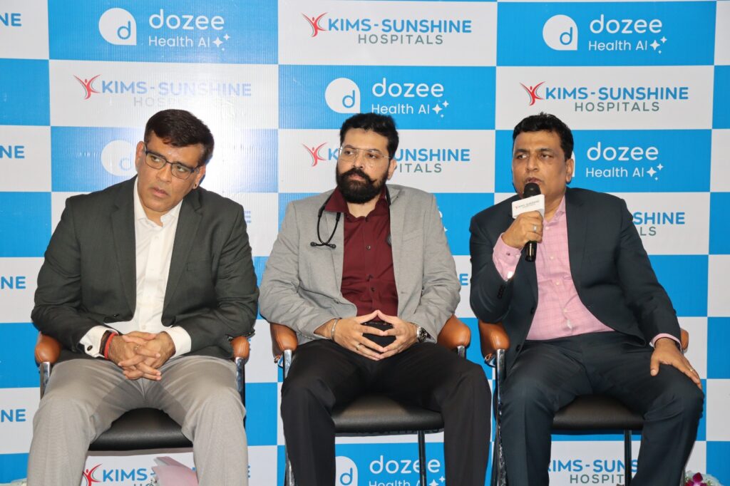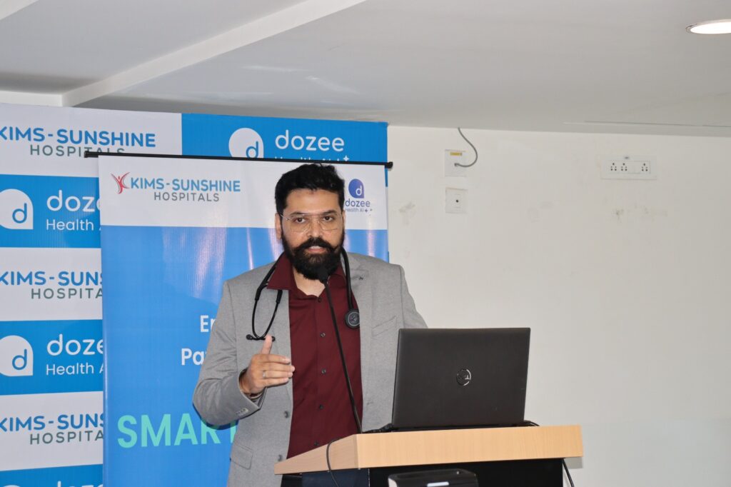 తెలిపారు.ఈ సందర్భంగా ఏర్పాటుచేసిన విలేకరుల సమావేశంలో కిమ్స్ సన్షైన్ హాస్పిటల్ సీనియర్ కన్సల్టెంట్ ఇంటర్నల్ మెడిసిన్ డాక్టర్ సుధేష్ పాటిల్ మాట్లాడుతూ ఐసియులో ఏ విధంగా రోగుల ఆరోగ్య పర్యవేక్షణ ఉంటుందో అలాగే ఎంపిక చేసిన వార్డులలో డోజీ గ్లోబల్ ఏఐ టెక్నాలజీతో రూపొందించిన కాంటాక్ట్స్ ఆర్పిఎం, మరియు ఈ డబ్ల్యూ టెక్నాలజీని రోగి బెడ్ కింద సన్నని సెన్సార్ అమర్చడంn ద్వారా రోగి హార్ట్ బీట్, శ్వాస, బీపీ, ఆక్సీజన్ లెవల్స్, ఊష్ణోగ్రతను నిరంతరం ట్రాక్ చేస్తుంది. ఎఐ టెక్నాలజీ ఎప్పటికప్పుడు ఈ డేటాను విశ్లేషిస్తూ రోగి పరిస్థితి క్షీణించే ముందు ముందస్తు హెచ్చరికలు పంపుతుంది. ఈ రియల్ టైం పర్యవేక్షణతో రోగి పరిస్థితి విషమించకముందే డాక్టర్లు తగిన వైద్యసేవలు అందించేందుకువీలవుతుందని తెలిపారు. కోడ్ బ్లూ సంఘటనలను తగ్గించేందుకు అవకాశముంటుందన్నారు. ఇది క్లినికల్ ఖచ్చితత్వం మరియు రోగుల నమ్మకాన్ని పెంచుతుందన్నారు.ఈ సందర్భంగా డోజీ సీనియర్ డైరెక్టర్ కౌశల్ పాండ్యా మాట్లాడుతూ ఎఐ టెక్నాలజీని వైద్య సేవలలో సమగ్రంగా అనుసందానం చేయడం ద్వారా రోగికి స్థిరమైన వైద్యసేవలను అందించేందుకు అవకాశముంటుందన్నారు. ప్రస్తుతం డోజీ ఏఐ టెక్నాలజీ భారతదేశంతో పాటు అమెరికా, టాంజానియా, యుఏఈలలో మూడు వందలకు పైగా హాస్పిటల్స్లో ఉపయోగిస్తున్నట్లు తెలిపారు. ఈ టెక్నాలజీ స్మార్ట్ హెల్త్ కేర్ మౌళిక సదుపాయాల్లో గ్లోబల్ లీడర్ గా నిలుస్తుందన్నారు. ఈ సందర్భంగా టెక్నాలజీ ఎలా పనిచేస్తుందో వీడియో, పవర్ పాయింట్ ప్రజెంటేషన్ ద్వారా వివరించారు.