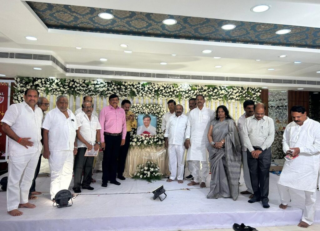 లయన్ నందం రామ ప్రసాద రావు దశ దిన కార్యక్రమంలో పాల్గొన్న ముమ్మారెడ్డి ప్రేమ్ కుమార్ ముందుగా రామ ప్రసాద రావు చిత్ర పటానికి పూల మాల వేసి నివాళులు అర్పించారు.ఈ సందర్భంగా ఆయన మాట్లాడుతూ మంచి తనానికి మారుపేరుగా నిలిచారని అన్నారు.లయన్స్ క్లబ్ ద్వారా సమాజం కోసం ఆయన చేసిన కృషి ఎన్నటికీ మరచి పోలేనిది అని అన్నారు.ఆయన పవిత్ర ఆత్మకు శాంతి చేకూర్చాలని ,వారి కుటుంబ సభ్యులకు దేవుడు ధైర్యాన్ని ఇవ్వాలని అన్నారు.ఈ కార్యక్రమంలో జనసేన నాయకులు బందు మిత్రులు పాల్గొన్నారు.