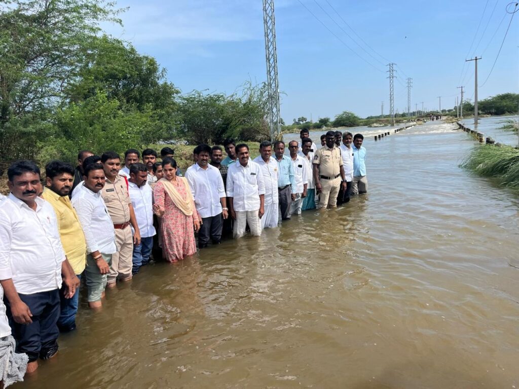 తాళ్లూరు-విఠలాపురం గ్రామాల నడుమ గల దోర్నపువాగు చప్టాను హైలెవెల్ చప్టా నిర్మాణంకు చర్యలు చేపట్టి తాళ్లూరు ప్రాంత ప్రజల రాక పోకలకు ఇబ్బందులు తలెత్త కుండా కృషి చేస్తానని దర్శి నియోజకవర్గ టీడీపీ ఇంచార్జి డాక్టర్ గొట్టి పాటిలక్ష్మి తెలిపారు. మొంథా తుఫాన్ వల్ల తాళ్లూరు ప్రాంత ప్రజలు ఎదుర్కొన్న ఇబ్బందులను తెలుసుకునేందుకు గురవారం ఆమె తాళ్లూరులో పర్యటించారు. తాళ్లూరు- విఠలాపురం గ్రామాల నడుమ రెండు రోజులైనా ప్రవాహం తగ్గక రాక పోకలకు ఇబ్బందిగా వున్న దోర్నపువాగు చప్టాను పరిశీలించారు. తాళ్లూరు నుండి అన్ని గ్రామాలకు ప్రధాన రహదారిగా వున్న ఈ మార్గంలో గల దోర్నపువాగు లోలెవెల్ చప్టా వల్ల వాగు ప్రవహించినప్పుడల్లా రాక పోకలకు ఇబ్బందిగా తయారైందని టీడీపీ నేతలు ఆమె దృష్టికి తీసుక వచ్చారు.