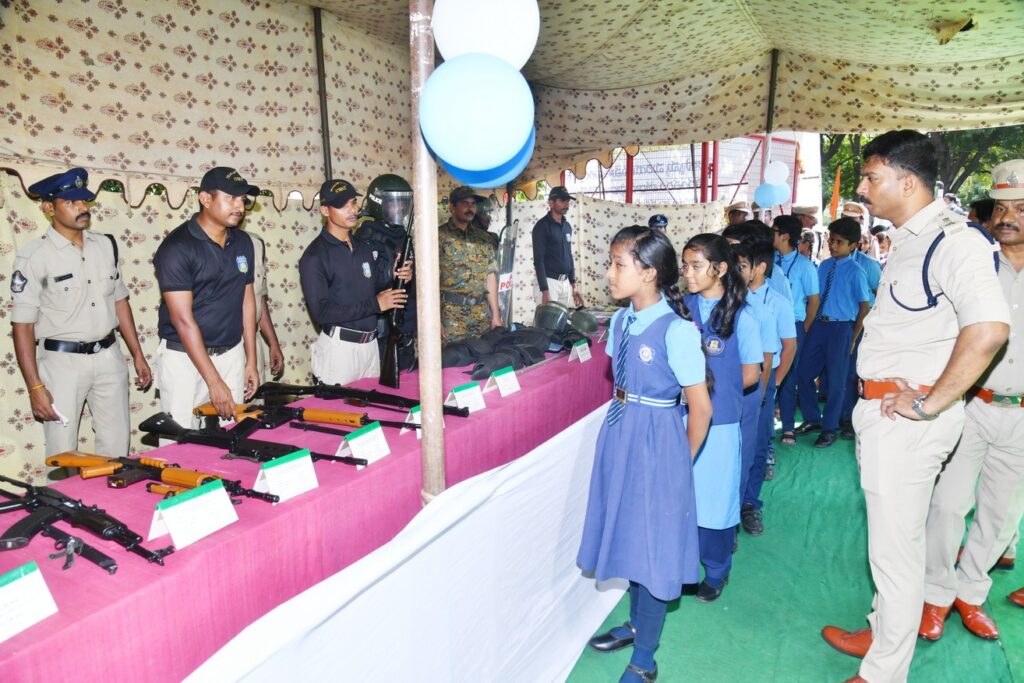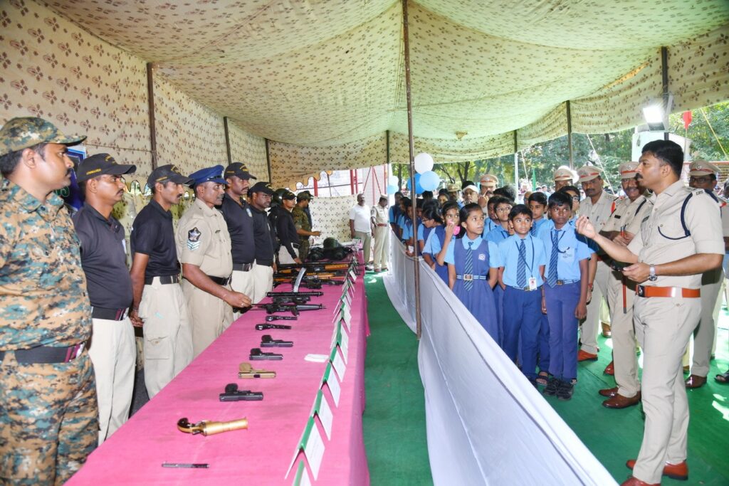 యాక్షన్ గన్, మెటల్ డిటెక్టర్, డ్రాగన్ లైట్, ర్యాకర్, బాంబు డిస్పోజల్ పరికరాలు, బాంబ్ బ్లాంకెట్, పలు పరికరాలు, వివిధ రైఫిల్స్ & పిస్టల్, త్రోయింగ్ వెహికల్, బుల్లెట్ ప్రూఫ్ వెహికల్, కమ్యూనికేషన్ వాహనం, 207 వజ్ర వాహనం, కమ్యూనికేషన్ మ్యాన్ ప్యాక్ సెట్స్, నేర పరిశోధనలో ఉపయోగించే డాగ్ స్క్వాడ్ బృందాలు, ట్రాఫిక్ పరికరాలు, రోడ్ సేఫ్టీ వాహనాలు, నైట్ విజన్, డే విజన్ పరికరాలు, బైనాక్యులర్, డ్రోన్ కెమెరాలు, వ్రేలిముద్రల సేకరించే పరికరాలు అవి పనిచేయు విధానం గురించి ఎస్పీ విద్యార్ధులకు, ప్రజలకు స్వయంగా వివరించారు.