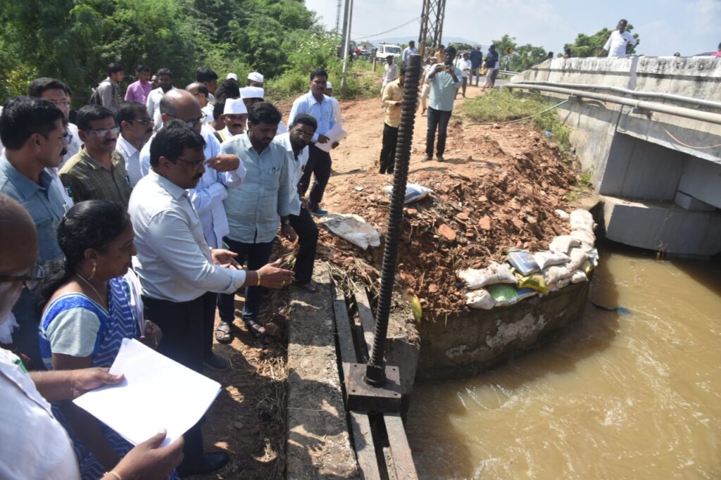 జిల్లా కలెక్టర్ పి రాజాబాబు, స్థానిక శాసన సభ్యులు ముత్తుముల అశోక్ రెడ్డి తో కలసి శనివారం కంభం చెరువును సందర్శించి చెరువు అలుగు నుండి పారుతున్న వరద నీటి ఉధృతిని పరిశీలించి అధికారుల నుండి వివరాలు అడిగి తెలుసుకున్నారు. తొలుత జిల్లా కలెక్టర్, బేస్తవారిపేట సమీపంలోని హై వే కు అనుకుని ఉన్న చీతిరాల కట్టువాను సందర్శించి కంభం చెరువు నుండి వస్తున్న వరద ఉధృతిని పరిశీలించారు.