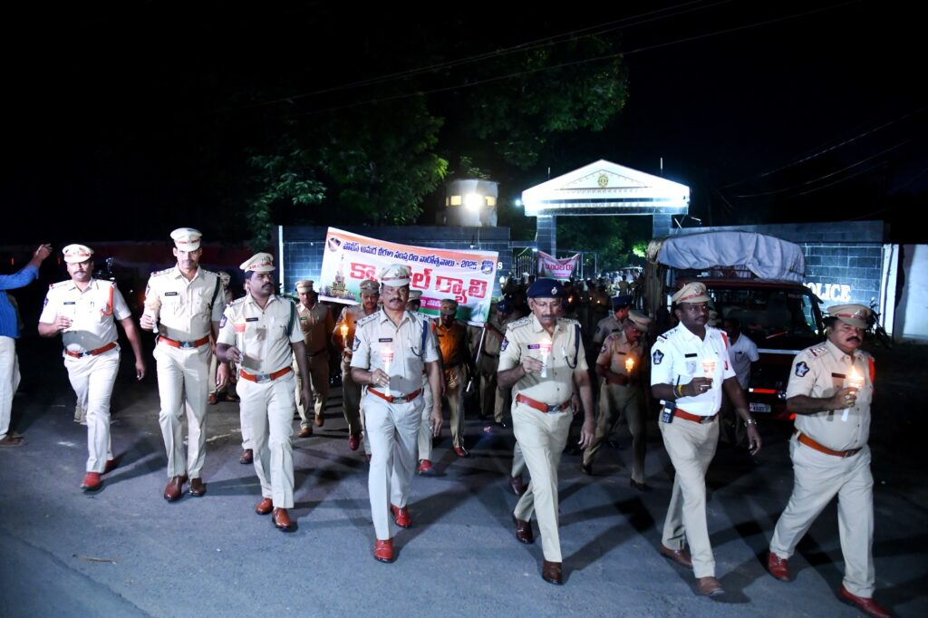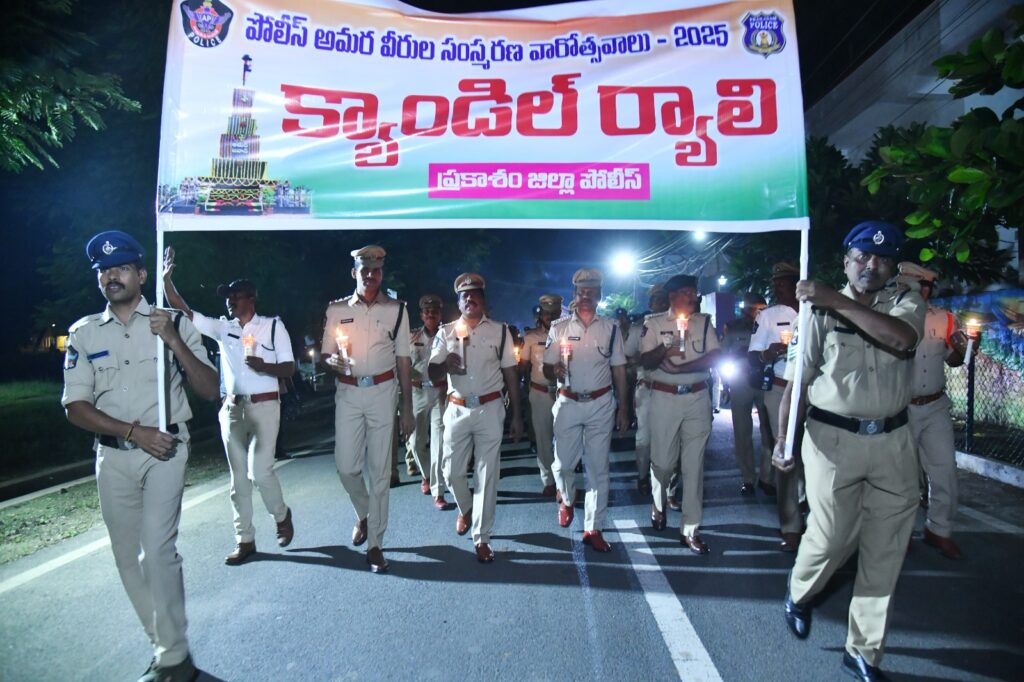 దేశ భద్రత, సమాజ రక్షణ కోసం ప్రాణత్యాగం చేసిన పోలీస్ అమరవీరుల త్యాగాలను స్మరించుకుంటూ, పోలీస్ అమరవీరుల వారోత్సవాలలో భాగంగా ప్రకాశం జిల్లా ఎస్పీ  వి.హర్షవర్ధన్ రాజు ఆదేశాల మేరకు పోలీస్ అధికారులు, సిబ్బంది శనివారం రాత్రి కొవ్వొత్తులతో ర్యాలీ నిర్వహించారు. ఈ ర్యాలీ జిల్లా పోలీస్ కార్యాలయం నుండి కర్నూల్ రోడ్‌ కూడలి వద్ద ఉన్న పోలీస్ అమరవీరుల స్థూపం వరకు క్యాండిల్ ర్యాలీ నిర్వహించారు.