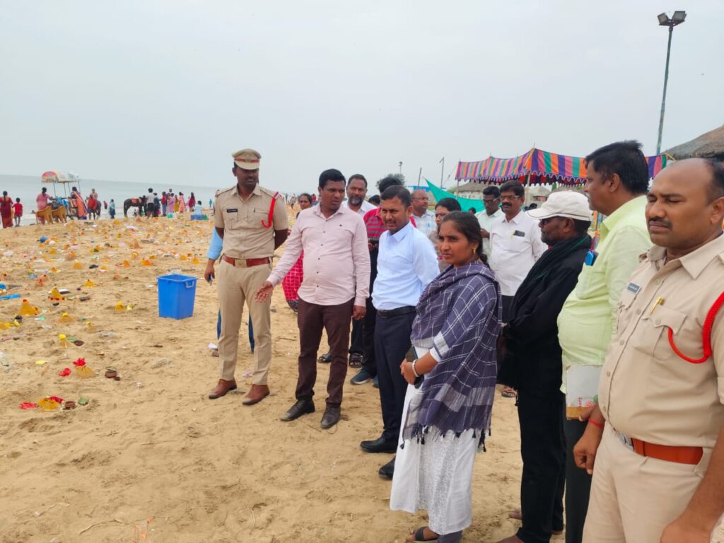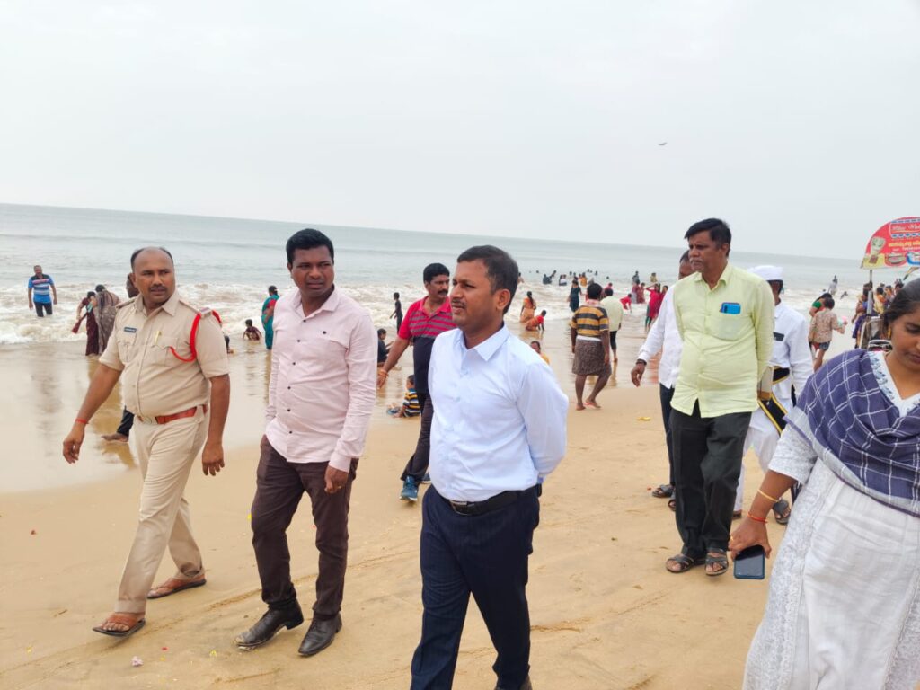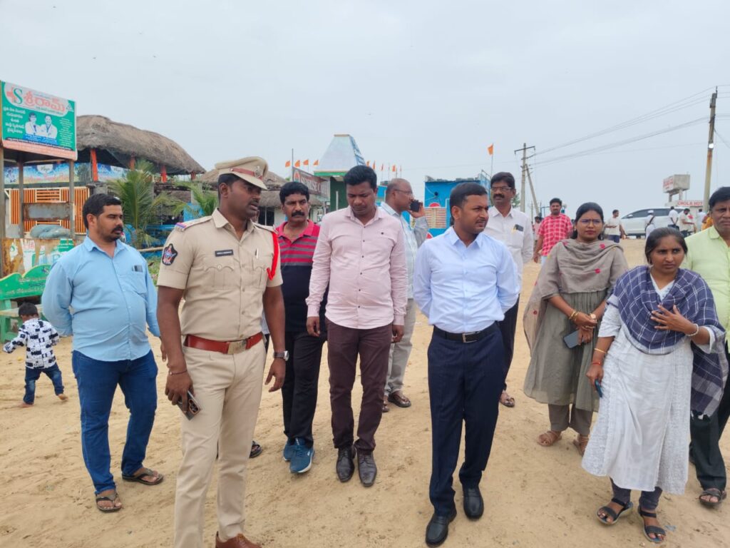 బుధవారం పరిశీలించారు. సముద్రస్నానాలకు వచ్చిన ప్రజలతోనూ ఆయన మాట్లాడారు. సంప్రదాయబద్ధంగా పుణ్యస్నానాలు ఆచరించాలని వారికి సూచించారు. ఎలాంటి ప్రమాదాలు జరగకుండా అధికారులు అన్ని ఏర్పాట్లు చేసినట్లు ఆయన చెప్పారు. వివిధ శాఖలు సమన్వయంతో పనిచేస్తూ ప్రజలకు అవసరమైన అన్ని సదుపాయాలను కల్పించినట్లు తెలిపారు. అధికారుల సూచనలు పాటిస్తూ సహకరించాలని ప్రజలను కోరారు. ఈ సందర్భంగా ఆయన వెంట మండల స్పెషల్ ఆఫీసర్ అయిన డిఆర్డిఏ పిడి నారాయణ, తహసిల్దార్ శాంతి, మెరైన్ పోలీసులు, ఇతర అధికారులు ఉన్నారు.