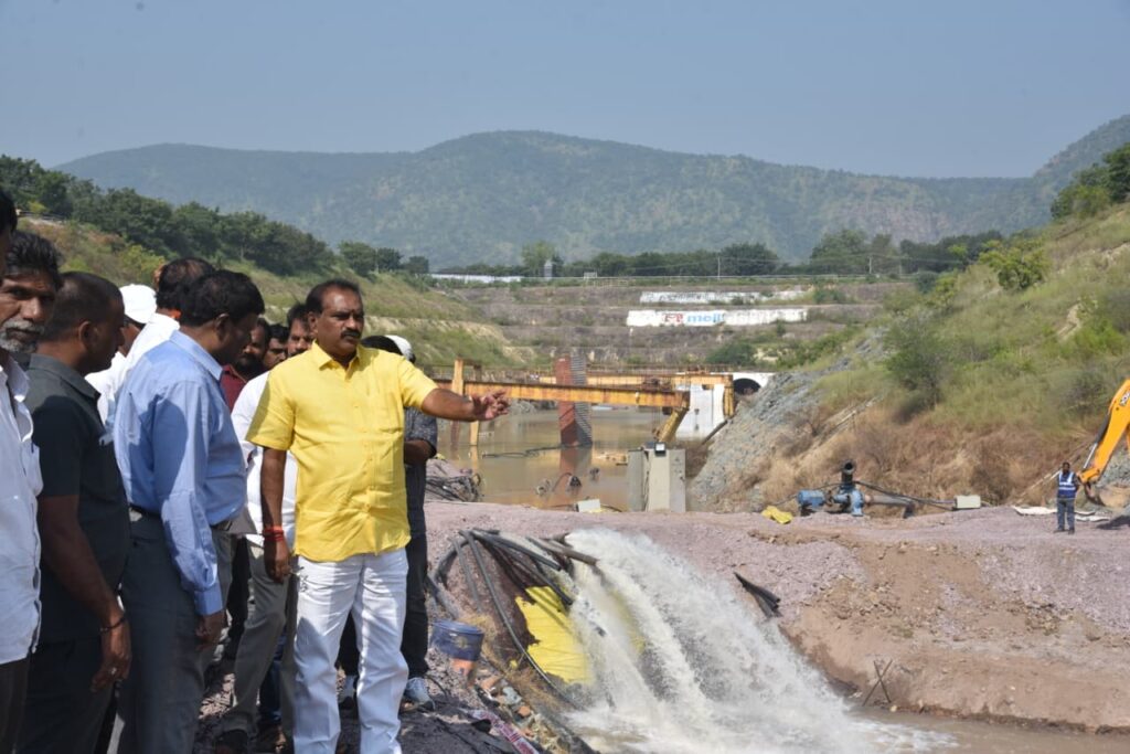 ఇటీవలే మొంథా తుఫాన్ కారణంగా దెబ్బతిన్న ఫీడర్ కెనాల్, పడిన గండ్లు, జంట సొరంగాల్లో డీవాటరింగ్ పనులను ఇరిగేషన్ నిపుణుల బృందంతో కలసి మంత్రి నిమ్మల బుధవారం పరిశీలించారు. తను వచ్చి వారం రోజులైనా యుద్ధ ప్రాతిపదికన చేయాల్సిన డివాటరింగ్ పనులు, గండ్లు పూడ్చివేత పూర్తి కాకపోవటంతో ‘ఇలా అయితే ఎలా అంటూ ‘ అసహనం వ్యక్తం చేశారు. అత్యంత వెనుకబడిన, ఫ్లోరైడ్ బాధిత ప్రకాశం జిల్లా ప్రజలకు న్యాయం చేయాలంటే వెలిగొండ ప్రాజెక్టు పూర్తి తోనే సాధ్యమవుతుందన్నారు. ఈ ప్రాజెక్టు ముఖ్యమంత్రి చంద్రబాబునాయుడి చిరకాల స్వప్నం అన్నారు. 1996లో ఆయన పుట్టినరోజు సందర్భంగా ఈ ప్రాజెక్టుకు భూమి పూజ జరిగింది అన్నారు. మూడు దశాబ్దాలు గడుస్తున్నా ఈ ప్రాజెక్టు పూర్తి కాకపోవడం పట్ల ఆయన అనేక సందర్భాల్లో ఆవేదన చెందారన్నారు. కూటమి ప్రభుత్వం వచ్చాక ఆయన ఈ ప్రాజెక్టు పై ప్రత్యేక శ్రద్ధ పెట్టి