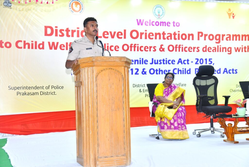 బాల్య న్యాయ చట్టం, పోక్సో చట్టం, పిల్లలకు సంబంధించిన ఇతర చట్టాలపై అవగాహన పెంపొందించేందుకు, పిల్లలతో వ్యవహరించే బాలల సంక్షేమ పోలీస్ అధికారులు, మహిళా సహాయక కేంద్రం సిబ్బంది, శక్తి టీమ్స్, జిల్లా ఏ హెచ్ టి యు బృందంతో ఒంగోలులోని జిల్లా పోలీస్ కళ్యాణ మండపంలో జిల్లా స్థాయి ఓరియెంటేషన్ కార్యక్రమం నిర్వహించారు. ఈ కార్యక్రమంలో ప్రకాశం జిల్లా ఎస్పీ వి.హర్షవర్ధన్ రాజు ముఖ్య అతిథిగా పాల్గొన్నారు.