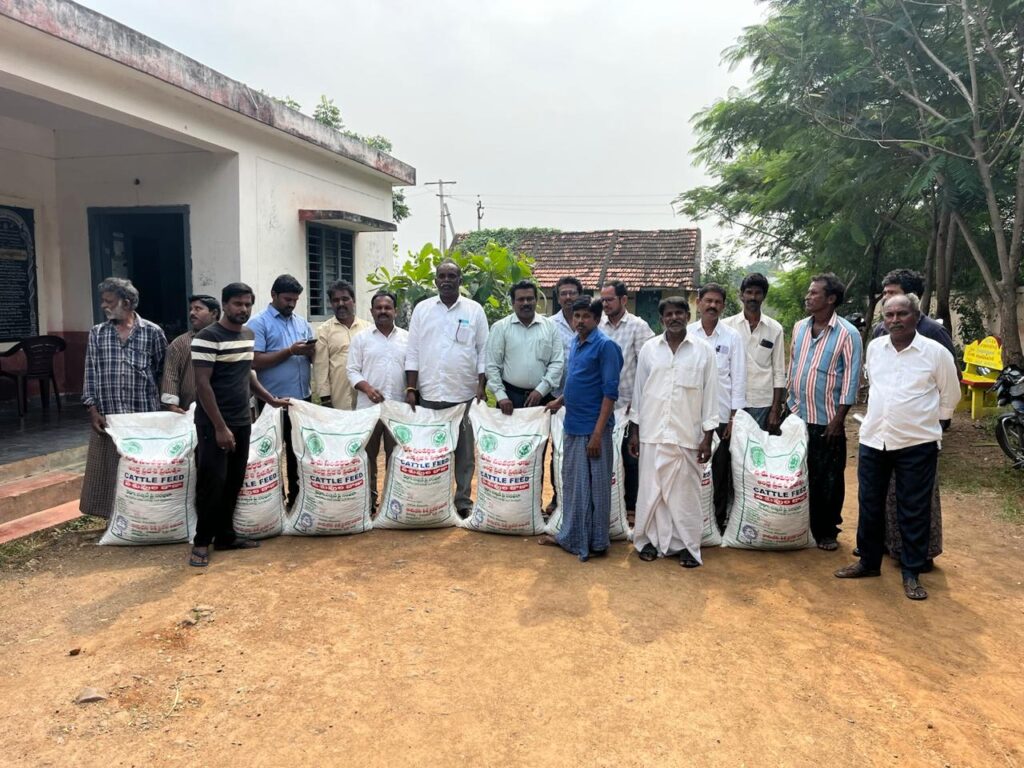 మారం వెంకట రెడ్డి, వైస్ ఎంపీపీ ఇడమకంటి వెంకటేశ్వర రెడ్డి లు కోరారు. స్థానిక పశువైద్యశాల ఆవరణలో సోమవారం పాడి రైతులకు నబ్సిడీపై అందిస్తున్న పశువుల దాణాను పంపిణీ చేసారు. పశుసంవర్థశాఖ దర్శి ఎడీ డాక్టర్ ఎ పురుషోత్తం రాజు మాట్లాడుతూ మండలంలో 5 టన్నుల పశువుల దాణా నబ్సిడీపై మంజూరు అయినదని చెప్పారు. పూర్తి ధర రూ. 1110 కాగా, రైతు తమ వాటా రూ. 555 చెల్లిస్తే సరిపోతుందని తెలిపారు. మండలంలో వంద బ్యాగ్గులు పశువుల దాణా అందుబాటులో ఉందని తెలిపారు. కార్యక్రమంలో తాళ్లూరు , తూర్పు గంగవరం పశువైద్యాధికారులు డాక్టర్ ప్రతాప్ రెడ్డి ,డాక్టర్ వంశీ , రజానగరం, బెల్లంకొండ వారి పాలెం సర్పంచిలు వలి, పీ ఎస్ శ్రీకాంత్ రెడ్డి, టిడిపి గ్రామ పార్టీ అధ్యక్షుడు మారం వెంకా రెడ్డి తదితరులు పాల్గొన్నారు.
