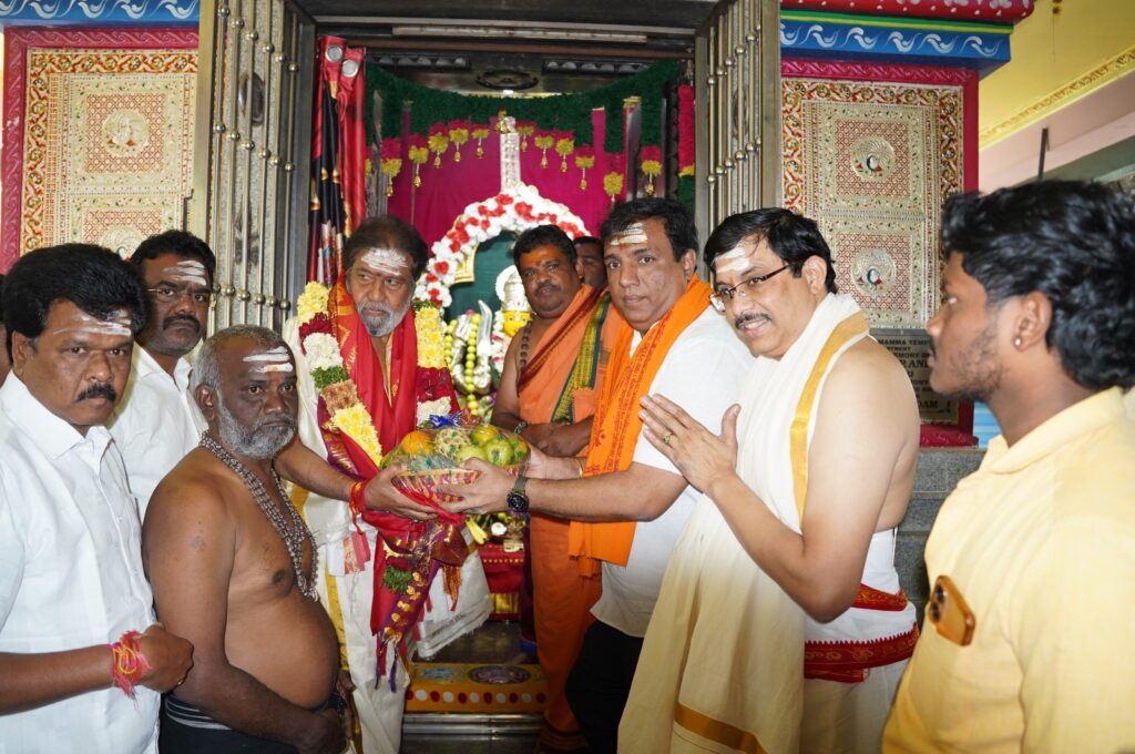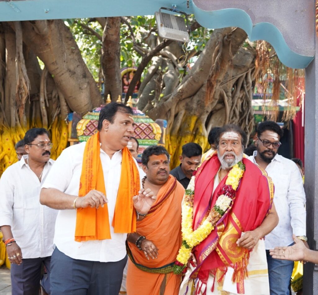 బేగంపేట శ్రీ రామలింగేశ్వర స్వామి దేవాలయంలోవైద్య,కుటుంబ,సంక్షేమ విజ్ఞాన సాంకేతిక శాఖల మంత్రి దామోదర రాజనర్సింహ మంగళ వారం దర్శించుకుని పూజలు నిర్వహించారు.మంత్రికి కాంగ్రెస్ పార్టీ సీనియర్ నాయకులు ,శ్రీ భూలక్ష్మీ దేవాలయ నిర్మాణ దాత విశాల్ సుధాం మంత్రిని సాంప్రదాయ బద్దంగా తోడ్కొని వెళ్ళి పూజలు నిర్వహింప జేశారు.ఘనంగా సత్కరించారు.పూజల అనంతరం మంత్రి భక్తులు,స్థానికులతో మాట్లాడారు.ఆలయ ప్రాంగణాన్ని పరిశీలించారు.దేవాలయ అభివృద్ధికోసం ప్రణాళికలు సిద్ధం చేయాలని విశాల్ సుధాం కు ,కాలనీ వాసులకు సూచించారు.దేవాలయ పునర్ నిర్మాణం ,,అభి వృద్ధి ఖర్చును తెలంగాణా ప్రభుత్వం భరిస్తుందని మంత్రి దామోదర రాజనర్సింహ వారికి హామీ ఇచ్చారు.దీని ద్వారా ఆలయంలో ఆధ్యాత్మిక వాతావరణాన్ని మరింతగా అభివృద్ధి చేయడమేనని మంత్రి తెలియ జేశారు.ఈ కార్యక్రమంలో భక్తులు వి.చంద్ర మోహన్,జే.శేఖర్,వెంకటరావు.ఎం.కృష్ణ,అరుణ్ గౌడ్ ,బాల,దేవాలయ ప్రధాన అర్చకులు మఠం సదాశివుడు తదితరులు పాల్గొన్నారు.