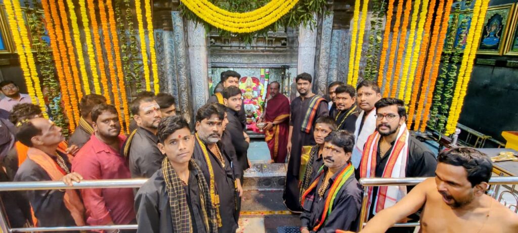 (జే ఎస్ డి ఎం న్యూస్) :సికింద్రాబాద్ శ్రీ ఉజ్జయినీ మహాకాళీ అమ్మ వారిని సికింద్రాబాద్ పార్లమెంట్ నియోజకవర్గ బిఆర్ఎస్ పార్టీ ఇంచార్జి తలసాని సాయి కిరణ్ యాదవ్ శుక్రవారం దర్శించుకున్నారు. అయ్యప్ప స్వామి మాలధారణ చేసిన సాయి కిరణ్ యాదవ్ మహంకాళి అమ్మవారిని దర్శించుకొని పూజలు నిర్వహించారు. పూజల అనంతరం ఆలయ పండితులు ఆశీర్వచనం చేసి తీర్ధ ప్రసాదాలు అందజేశారు.