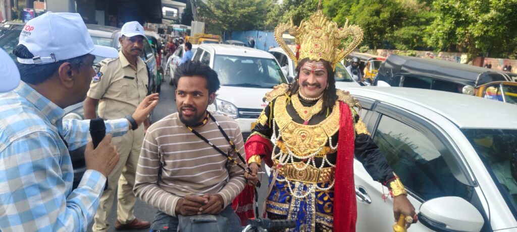 సర్వేజనా ఫౌండేషన్ ఆధ్వర్యంలో హైదరాబాద్ ను సేఫరాబాద్ మార్చాలనే లక్ష్యం తో రోడ్డు ప్రమాదాలకు కారణమవుతున్న సప్త పాపాలను అరికట్టేందుకు యమలోకం నుంచి నేరుగా యమధర్మరాజును రంగంలోకి దింపారు. యమలోకం నుంచి కొన్ని రోజులు సెలవు తీసుకొని యమధర్మరాజు భూలోకానికి వచ్చాడు. యమలోకంలో అకాల మరణాల వల్ల సరైన సదుపాయాలుకల్పించలేకపోతున్నందుకు అకాల మరణాలను అపాలనే తీవ్రమైన ఆకాంక్షతో హైదరాబాద్ లోని ప్రతి జంక్షన్ లో ఒక రోజు ప్రత్యక్షమై హెల్మెట్, సీటు బెల్టు పెట్టుకోని వారికి తగిన బోధన చేసి, అకాల మరణాలను ఆపాలనే కృతనిక్షయంతో భూలోకానికి వచ్చిన యమధర్మరాజు బుధవారం సర్వేజనా ఫౌండేషన్ ఆధ్వర్యంలో రసూల్ పురా జంక్షన్లో ఏర్పాటుచేసిన అవగాహ కార్యక్రమంలో యమధర్మరాజును మొదటి విడతగా అవగాహన కార్యక్రమానికి శ్రీకారం చుట్టినట్లు సర్వేజనా ఫౌండేషన్ చైర్మన్ డాక్టర్ ఎ.వి. గురవారెడ్డి తెలిపారు. ఈ కార్యక్రమం నగరంలోని 365 ప్రధాన జంక్షన్లు (కూడళ్లు) ఎంచుకొని సంవత్సరం పాటు రహదారి భద్రతను ఒక దీక్షతో కొనసాగించి, అకాల మరణాలను తగ్గించి హైదరాబాద్ ను సేఫరాబాద్ మార్చాలనే లక్ష్యంతో ముందుకు సాగుతున్నామని తెలిపారు.సప్త పాపాలు అధిక వేగం, మధ్యం సేవించి వాహనం నడపడం, మొబైల్ ఫోన్ ఉపయోగిస్తూ డ్రైవింగ్ చేయడం, సిగ్నల్ జెంపింగ్, రాంగ్ రూట్ డ్రైవింగ్, సీటు బెల్టు వేసుకోకపోవడం, హెల్మెట్ ధరించకపోవం వల్లే మన దేశంలో ప్రతి మూడు నిమిషాలకు ఒకరు రోడ్డు ప్రమాదంలో మరణిస్తున్నారు. ప్రపంచంలో ఉన్న వాహనాలతో పోలిస్తే ఇండియాలో ఒక శాతం మాత్రమే కాని ప్రపంచంలో జరిగే రోడ్డు యాక్సిడెంట్లలో మరణిస్తున్న మరణాల్లో మన దేశం వాటా 16 శాతం ఉండటం బాధపడాల్సిన విషయమని డాక్టర్ గురవారెడ్డి తెలిపారు. అమెరికాలో మన దేశం కంటే నాలుగు రెట్లు ఎక్కువ యాక్సిడెంట్లు జరుగుతున్నా. ఇండియాలో నాలుగు రెట్లు ఎక్కువ మరణాలు సంభవిస్తున్నాయని ఇందుకు ట్రాఫిక్ రూల్స్ పాటించకపోవడం కారణమని తెలిపారు. ట్రాఫిక్ రూల్స్ పాటిస్తూ డ్రైవ్ చేస్తే 60 శాతం మరణాలను అడ్డుకోవచ్చని తెలియజేయడంతో పాటు అందరిలో అవగాహన కల్పించేందుకే ఈ కార్యక్రమానికి శ్రీకారం చుట్టినట్లు తెలిపారు.