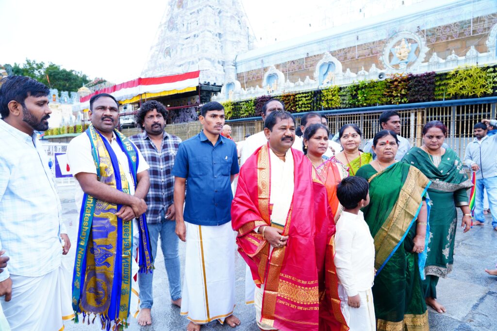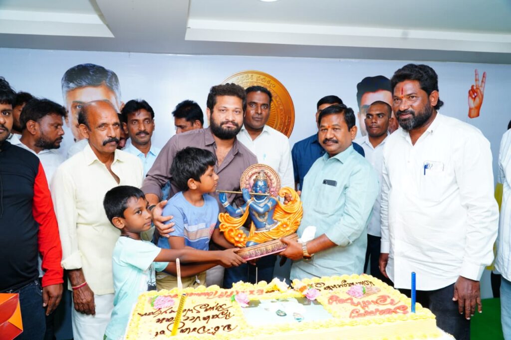 రాష్ట్ర సాంఘిక సంక్షేమ శాఖ మంత్రి డా. డోలా బాల వీరాంజనేయస్వామి జన్మదిన వేడుకలు ఘనంగా జరిగాయి. గురువారం నాడు టంగుటూరు మండలం తూర్పునాయుడుపాలెం క్యాంప్ కార్యాలయంలో ప్రజలు, కూటమి నాయకులు, కార్యకర్తల కోలాహలం మధ్య మంత్రి కేక్ కట్ చేశారు. అనంతరం జిల్లా నలుమూలల నుంచి పెద్ద ఎత్తున తరలివచ్చిన ప్రజలు, కూటమి నాయకులు, కార్యకర్తలు, జిల్లా అధికారులు మంత్రిని కలిసి పుష్పగుచ్చాలు అందించి శుభాకాంక్షలు తెలిపారు. మంత్రి పుట్టినరోజు సందర్భంగా తూర్పు నాయుడుపాలెం క్యాంప్ కార్యాలయం వద్ద గురువారం నాడు పండుగ వాతావరణం నెలకొంది. మంత్రి బాల వీరాంజనేయ స్వామి తిరుమల తిరుపతి వెంకటేశ్వర స్వామి వారిని దర్శించుకుని ప్రత్యేక పూజలు చేశారు. కనిగిరి ఎమ్మెల్యే డాక్టర్ ముక్కు ఉగ్ర నర సింహా రెడ్డి , దర్శి టీడీపీ నియోజకవర్గ ఇన్చార్జి డాక్టర్ గొట్టిపాటి లక్ష్మి ,డాక్టర్ కడియాల లలిత్ సాగర్ లో కలసి మంత్రికి జన్మదిన శుభాకాంక్షలు తెలిపారు. అదేవిధంగా డాక్టర్ కడియాల దళిత సాగర్ కు కూడా జన్మదిన శుభాకాంక్షలు మంత్రి డోలా బాల వీరాంజనేయ స్వామి తెలియజేశారు.