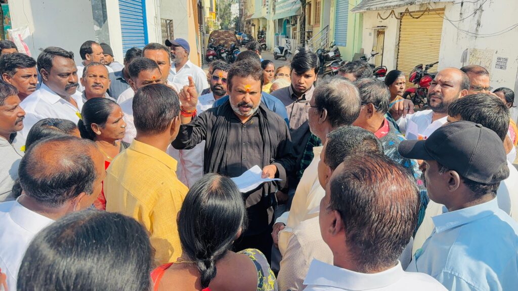 అనంతరం బస్తీ వాసులతో కలసి క్షేత్రస్థాయిలో పర్యటించి బస్తీ వాసులకు అవసరమైన కమ్యూనిటీ హాల్, సిమెంట్ రోడ్లునిర్మాణం చేయిస్తామన్నారు.,నూతన బోర్ వెల్స్ వేయిస్తానని చెప్పారు.అలాగే నూతన కరెంట్ పోల్స్, మెరుగైన డ్రైనేజీ వ్యవస్థ గురించి సంబంధిత అధికారులతో మాట్లాడి త్వరితగతిన పరిష్కారం లభించేలా చూస్తానని బస్తీ వాసులకు ఎమ్మెల్యే శ్రీగణేష్ చెప్పడంతో తమ సమస్యల పరిష్కారానికి చొరవ చూపుతున్న ఎమ్మెల్యే కి బస్తీ వాసులు కృతజ్ఞతలు తెలపడంతో మీ ఓటు వృధా కానివ్వనని బస్తీలను అభివృద్ధి చేసి మీ ఆదరాభిమానాలు చూరగొంటానని ఎమ్మెల్యే వారితో అన్నారు.ఈ పర్యటనలో ఎమ్మెల్యే వెంట కాంగ్రెస్ పార్టీ నాయకులు సంకి రవీందర్, నాగేందర్ యాదవ్,సతీష్, మార్కెట్ కమిటీ డైరెక్టర్ సంతోష్,బిక్షపతి, విష్ణు, సాయి,శ్యామల, రజనీ , పెద్ద బిక్షపతి, అశోక్, బాలకృష్ణ, అరవింద్ తదితరులు ఉన్నారు.