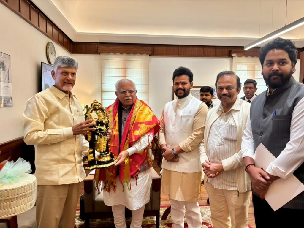 ఆంధ్ర ప్రదేశ్ ముఖ్యమంత్రివర్యులు నారా చంద్ర బాబు నాయుడు ఢిల్లీ పర్యటనలో భాగంగా శుక్రవారం కేంద్ర గృహనిర్మాణ మరియు పట్టణ వ్యవహారాల శాఖా మంత్రి మనోహర్ లాల్ ఖట్టర్ ని సీఎం చంద్రబాబు నాయుడు , ఒంగోలు పార్లమెంట్ సభ్యులు మాగుంట శ్రీనివాసులు రెడ్డి మరియు ఇతర పార్లమెంట్ సభ్యులు మర్యాద పూర్వకంగా కలిసారు. పలు అంశాలపై చర్చించారు .