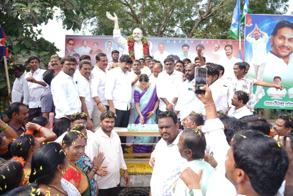 దమ్ము, ధైర్యం, నిజాయితీతో రాజకీయం చేస్తున్న ఏకైక వ్యక్తి మాజీ సీఎం వైఎస్ జగన్ మోహన్ రెడ్డి అని వైసీపి జిల్లా అధ్యక్షుడు, దర్శి ఎమ్మెల్యే డాక్టర్ బూచేపల్లి శివ ప్రసాద్ రెడ్డి అన్నారు. తాళ్లూరు మండల కేంద్రంలో ఆదివారం మాజీ సీఎం వైఎస్ జగన్మోహన్ రెడ్డి జన్మదిన వేడుకలు వైసీపీ ఆధ్వర్యంలో ఘనంగా నిర్వహించారు. వైసిపి జిల్లా అధ్యక్షుడు, దర్శి ఎమ్మెల్యే డాక్టర్ బూచేపల్లి శివ ప్రసాద్ రెడ్డి, జిల్లా పరిషత్ చైర్ పర్సన్ బూచేపల్లి వెంకాయమ్మలు ముఖ్య అతిథులుగా పాల్గొన్నారు. ఎమ్మెల్యే డాక్టర్ బూచేపల్లి మాట్లాడుతూ సీఎంగా వైఎస్ జగన్మోహన్ రెడ్డి అన్ని వర్గాలకు మేలు చేసారు కాబట్టే నేడు ఆయన పుట్టిన రోజును ప్రతి ఒక్కరూ నిర్వహించుకోవటానికి ముందుకు అధిక సంఖ్యలో వచ్చారని అన్నారు. తాళ్లూరు మండల కేంద్రంలో కలసి మెలిసి ఎడతాటి పై నిలబడి మండలంలో పార్టీకి తిరుగులేదు అని నిరూపించారని అన్నారు. రాజకీయాలలో అవకాశ వాదులు ఉంటారని, పార్టీ అధికారంలో లేనప్పుడు వెళ్లిపోవటం అధికారంలో ఉన్నప్పుడు ఉండటం, చేస్తుంటారని అన్నారు. కార్యకర్తలకు ఎల్లప్పుడూ బూచేపల్లి కుటుంబం కార్యకర్తలకు అండగా ఉంటామని అన్నారు. పార్టీ కార్యకర్తలే పార్టీకి బలం అని అన్నారు. 2029లో మరలా వైఎన్ జగన్ ను సీఎంగా చేసుకునేందుకు కృషి చెయ్యాలని అన్నారు. జిల్లా పరిషత్ చైర్ పర్సన్ బూచేపల్లి వెంకాయమ్మ మాట్లాడుతూ 2019లో సీఎం వైఎస్ జగన్ గా ఉన్న సమయంలో నవరత్నాలు ప్రవేశ పెట్టి అమలు చేసి అన్ని వర్గాల ప్రజలను అదుకున్నాడని అన్నారు. పేద వాళ్ల కోసం మరలా సీఎం గా వైఎస్ జగన్ ను చేసుకుందామని పిలుపునిచ్చారు. ముందుగా బ్రహ్మాం గారి గుడి వద్ద ఉన్న దివంగత సీఎం వైఎస్ రాజశేఖర్ రెడ్డి విగ్రహానికి ర్యాలీగా వచ్చి వెల్లంపల్లి రోడ్ లోనివైఎస్ఆర్ విగ్రహానికి నివాళులు అర్పించారు. కేక్ నుకట్ చేసి మహిళలకు చీరలను పంచి పెట్టారు. భారీ అన్నదానం నిర్వహించారు. కార్యక్రమంలో మండల పార్టీ అధ్యక్షుడు టీవీ నుబ్బా రెడ్డి, మాజీ ఎంపీపీ గోళ్లపాటి మోషే, మాజీ జెడ్పీటీసీ ఎల్ బి వెంకటేశ్వర రెడ్డి, నర్పంచిల సంఘం అధ్యక్షుడు మారం ఇంద్రసేనా రెడ్డి, కోట క్రిష్ణా రెడ్డి, సర్పంచిలు మందా చార్లేన్ సర్జన్, వలి, సుబ్బా రావు, టి ఎస్ వెంకట రామి రెడ్డి, బ్రహ్మా రెడ్డి, ఉప సర్పంచి మండల ఉపాధ్యక్షుడు పులి ప్రసాద్ రెడ్డి, కోట మన్నే రెడ్డి, కోట కోటి రెడ్డి, ఇడమకంటి రాజగోపాల్ రెడ్డి (గోపి అన్న), నాగార్జున, యారం రమణా రెడ్డి, రవి, కోట శ్రీనివాస రెడ్డి, విష్ణు, శరత్, అశోక్ రెడ్డి, తిరుపతి రెడ్డి, వెంకటేశ్వర రెడ్డి, గోపు శ్రీను, కటకంశెట్టి శ్రీను, కుమ్మిత నాగి రెడ్డి, జయ రామి రెడ్డి, పూనూరి దేవదానం, బాల క్రిష్ణా రెడ్డి, డగ్లస్ తదితరులు పాల్గొన్నారు.