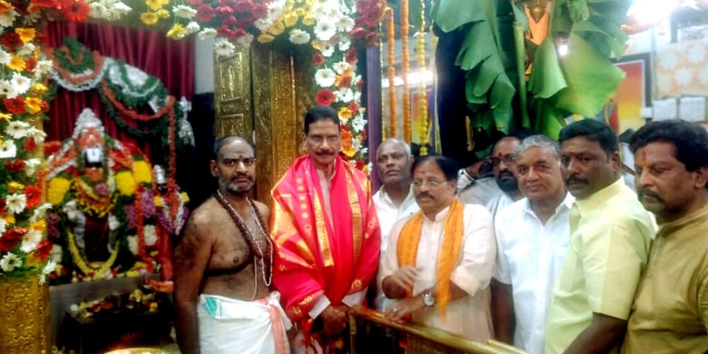 కలియుగ దైవం శ్రీ వెంకటేశ్వర స్వామి ప్రజలందరినీ చల్లగా చూడాలని మాజీ మంత్రి ,బి జె పి సీనియర్ నాయకులు మర్రి శశిధర్ రెడ్డి అన్నారు. వైకుంఠ ఏకాదశి పర్వదినం పురస్కరించుకొని సనత్ నగర్ నియోజకవర్గం ఎస్సార్ నగర్ లోని శ్రీ వేంకటేశ్వర స్వామి దేవాలయంలో మర్రి శశిధర్ రెడ్డి ప్రత్యేక పూజలు నిర్వహించారు ఈ సందర్భంగా ఆలయ అర్చకులు మర్రికి తీర్థ ప్రసాదాలను అందజేసి ఆశీర్వచనాలు అందించారు. మర్రి వెంట బిజెపి నాయకులు కార్యకర్తలు ఉన్నారు.