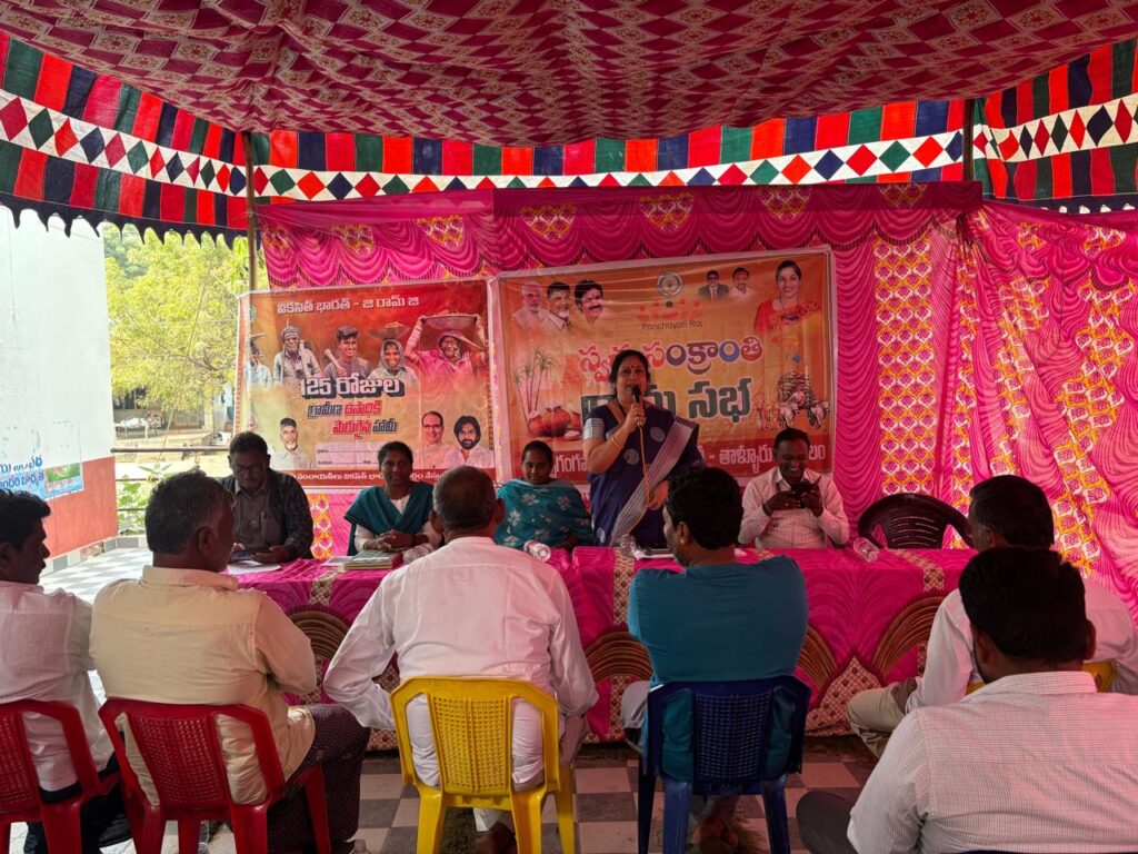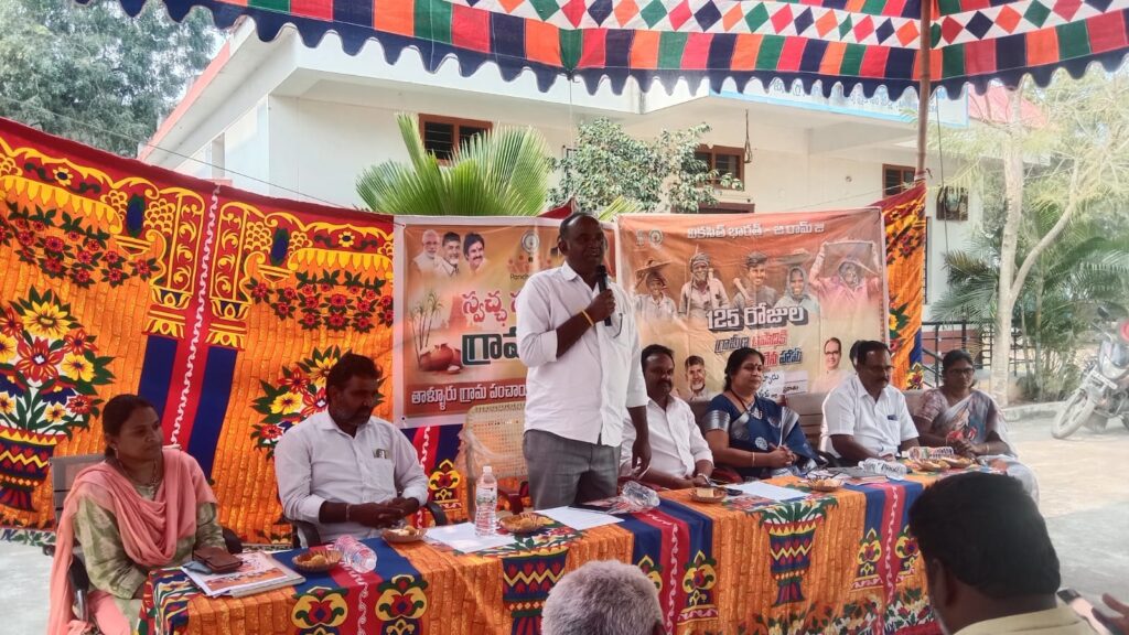 అధికారులు సమన్వయంతో పనిచేసి ప్రభుత్వం చేపట్టిన కార్యక్రమాలను ప్రజలకు ఉ పయోగపడేలా తీర్చిదిద్దాలని జెడ్పీటీసీ మారం వెంకట రెడ్డి అన్నారు. తాళ్లూరు మండలంలో అన్ని సోమవారం వికసిత్ భారత్ – జి రామ్ జి. స్వచ్చ సంక్రాంతి -న్వచ్చ గ్రామ పంచాయితీలు కార్యక్రమం నిర్వహించారు. తాళ్లూరు జెడ్పీటీసీ మారం వెంకట రెడ్డి, వైస్ ఎంపీపీ ఇడమకంటి వెంకటేశ్వర రెడ్డి, టిడిపి గ్రామ పార్టీ అధ్యక్షుడు మారం వెంకా రెడ్డిలు ముఖ్య అతిథులుగా పాల్గొన్నారు. ఎంపీడీఓ అజిత మాట్లాడుతూ స్వచ్ఛ గ్రామ పంచాయితీలకు ప్రతి ఒక్కరి సహకారం అవసరమని అందరి సహకారంతో విజయవంతం అవుతాయని అన్నారు. తూర్పుగంగవరంలో ఎంపీడీఓ మాట్లాడుతూ ఎన్ డబ్ల్యు పీసీ కేంద్రాన్ని ఉపయోగంలోనికి తీసుకురావాలని కోరారు. అక్కడ టిడిపి కి చెందిన వ్యక్తి ఇనుకను డప్ చేసి వాడుకుంటున్న విషయం తన దృష్టికి వచ్చిందని తక్షణమే ఖాళీ చేయించి ఉపయోగం లోనికి తీసుకురావాలని గ్రామ కార్యదర్శి నాగ మల్లేశ్వరి ని ఆదేశించారు. గతంలో తూర్పుగంగవరంలో 2400 మంది వద్ద పన్నులు వనూలు చేసి బిల్లులు ఇచ్చారని వాటిని పంచాయితీ ఖాతాలో జమ చేయ్యలేదని సొసైటీ చైర్మన్ వల్లభనేని సుబ్బయ్య నభ దృష్టికి తెచ్చారు. విఠలాపురం లో సర్పంచి మారం ఇంద్రసేనా రెడ్డి అధ్యక్షతన సభను నిర్వహించారు. నూతనంగా చేపట్టనున్న వికసిత్ భార్ జి రామ్ లో ఉపాధి కూలీలు అందరూ పాల్గొనేలా చూడాల్సిన బాధ్యత అధికారులపై ఉందని అన్నారు. ఆయూ సభలలో గ్రామ కార్యదర్శులు షహనాజ్ వేగం పి మెలకయ్య, నుబ్బా రెడ్డి, శ్రీవల్లి, ఈవీశేషమ్మలు, మన్నేపల్లిలో పంచాయితీలో సొసైటీ చైర్మన్ గొంది రమణా రెడ్డి (నమర), తాళ్లూరులో డిప్యూటీ ఎంపీడీఓ శ్రీనివాసన రావు, తూర్పుగంవరంలో ఎంఈఓ జి నుబ్బయ్య, అన్ని పంచాయితీలలో మండల స్థాయి అధికారులు వ్యవసాయాధికారి ప్రసాద రావు, ఎపీఓ వెంకటేశ్వర్లు, ఎపీఎం దేవరాజ్ తదితరులు పాల్గొని పధకాల లక్ష్యాన్ని వివరించారు.