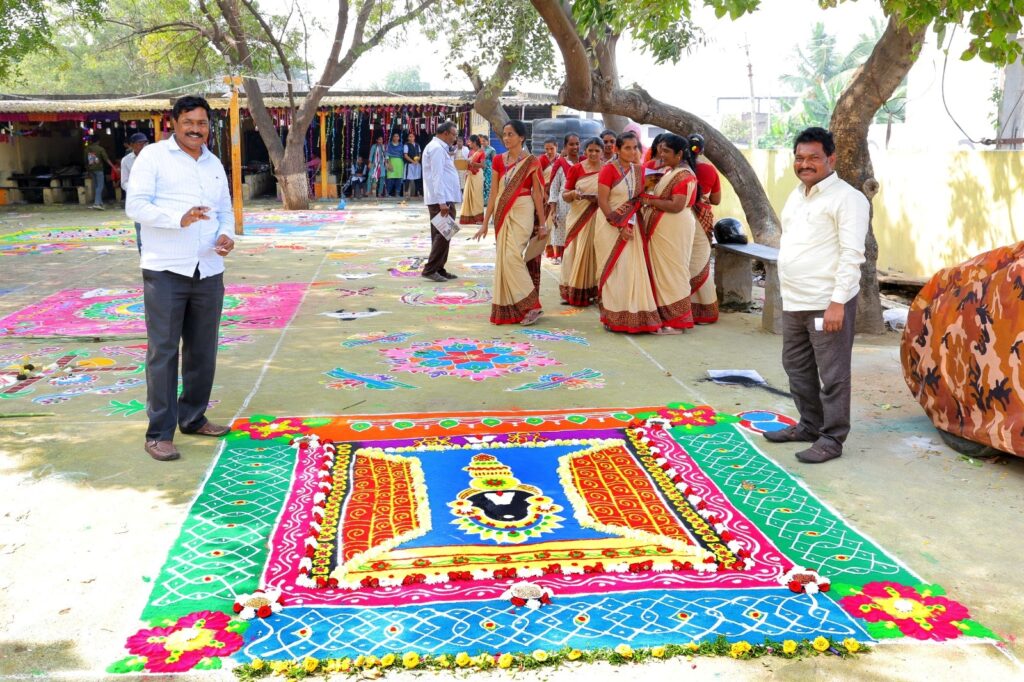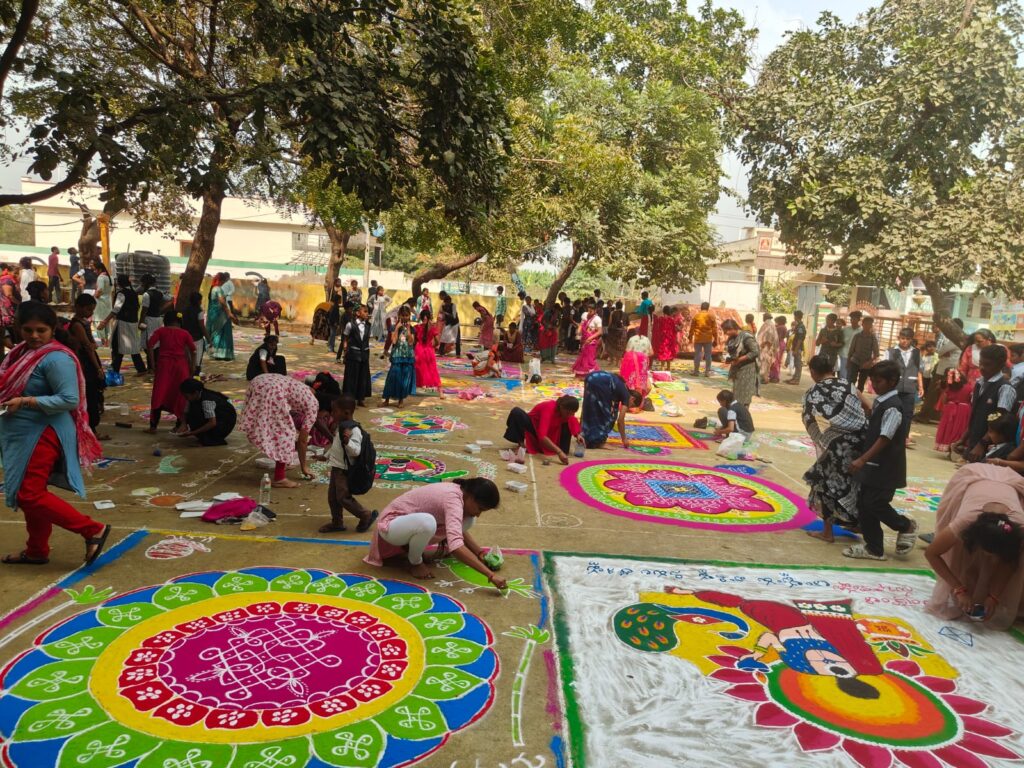 ప్రధానోపాధ్యాయుడు వెంకటేశ్వర రావు మాట్లాడుతూ ముగ్గులలో ప్రతిభ చాటిన వారికి ప్రధమ, ద్వితీయ, తృతీయ బహుమతులతో పాటు పాల్గొన్న ప్రతి ఒక్కరికి బహుమతి ఉంటుందని చెప్పారు. కార్యక్రమంలో కరస్పాండెంట్ టి శ్రీనివాస రెడ్డి, డైరెక్టర్ కాలేషా బాబులు పాల్గొన్నారు.