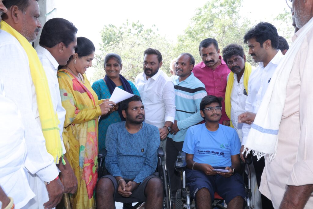 ఆకుటుంబానికి కూటమి కూటమి ప్రభుత్వం ఆదుకోవటం తనకు ఎంతోఆనందాన్ని,సం తృప్తి నిచ్చిందన్నారు. ఎంపీపీ తాటికొండ శ్రీనివాసరావు మా ట్లాడుతూ కండరాల వ్యాధితో బాధపడుతూ వీల్ చైర్లకు పరిమితమైన ఆఇద్దరు సోదరులకు ఇంచార్జి డాక్టర్ లక్ష్మి అండగా నిలిచారన్నారు. ఆపిల్లల వైద్యఖర్చులకు ఉన్న ఆస్తినంతా అమ్ముకున్నారని, ఇక చికిత్స చేయించలేక నిశ్సహాయస్థితిలో వున్న పేదకుటుంబా నికి తాను అండగావున్నాని చెప్పటమేకాకుండా సీఎం చంద్రబాబు వద్దకు తీసుక వెళ్లి వైద్యఖర్చులకు రూ 4లక్షలు మంజూరు చేయించి ఆ కుటుంబాన్ని ఆదుకున్నా రన్నారు. వారివైద్యఖర్చులకు అవసరమైన ఆర్ధిక సాయం ప్రభుత్వం అందించేలా చర్యలు తీసుకోవాలని ఇంచార్జి లక్ష్మికి విన్నవించారు. ఈ కార్యక్రమంలో ఎంపీపీ తాటికొండ శ్రీనివా సరావు,మండల టీడీపీ అధ్యక్షులుమేడగంవెంకటేశ్వరరెడ్డి, వైస్ ఎంపీపీ ఐ.వెంకటేశ్వ రరెడ్డి.రాష్ట్రనాటక అకాడమి కార్పోరేషన్ డైరెక్టర్ బి.ఓబుల్రెడ్డి,మనేపల్లి సొసైటీ అరురులు జి రమణారెడి టీడీపీ నాయకులు మానం రమేష్ బాబు ఏ వేణు.
