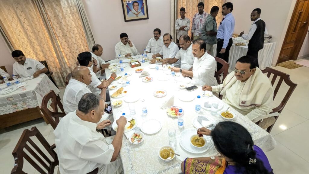 ఒంగోలు పార్లమెంటు సభ్యులు మాగుంట శ్రీనివాసులు రెడ్డి ఆయన కార్యాలయంలో ఏర్పాటు చేసిన అల్పాహార విందులో మంత్రులు నాయకులు పాల్గొన్నారు. జిల్లా ఇన్చార్జి మంత్రి ఆనం రామ నారాయణ రెడ్డి, సాంఘిక సంక్షేమశాఖ మంత్రి డోల బాల వీరాంజనేయ స్వామి, పార్టీ పార్లమెంటు అధ్యక్షుడు, కనిగిరి ఎమ్మెల్యే డాక్టర్ ముక్కు ఉగ్రనరసింహా రెడ్డి, రాష్ట్ర ఉపాధ్యక్షుడు, ఒంగోలు ఎమ్మెల్యే దామచర్ల జనార్థన్ రావు, సంతనూతల పాడు ఎమ్మెల్యే బి ఎన్ విజయ కుమార్, మేయర్ గంగాడ సుజాత, నాయకులు బెజవాడ సురేష్ కుమార్ రెడ్డి, అయినా బత్తిన ఘన శ్యాం తదితరులు పాల్గొన్నారు.