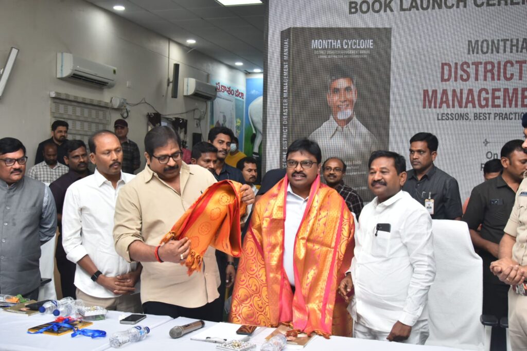 చెప్పారు. మొంథా తుఫాన్ సమయంలో ప్రాణ నష్టం జరగకుండా జిల్లా యంత్రాంగం స్పందించిన తీరే దీనికి నిదర్శనమన్నారు. ఈ తుఫాన్ సమయంలో ఎదురైన పరిస్థితులను, వాటిని అధిగమించిన అనుభవాలను జిల్లా కలెక్టర్ పి.రాజాబాబు డాక్యుమెంటేషన్ చేయించారు. మంత్రి స్వామితో పాటు ఒంగోలు శాసనసభ్యులు దామచర్ల జనార్ధన రావు, సంతనూతలపాడు శాసనసభ్యులు బి.ఎన్. విజయకుమార్, నగర మేయర్ గంగాడ సుజాత, ఒంగోలు అర్బన్ డెవలప్మెంట్ అథారిటీ చైర్మన్ షేక్ రియాజ్ బుధవారం ప్రకాశం భవనంలో ఈ పుస్తకాన్ని ఆవిష్కరించారు.