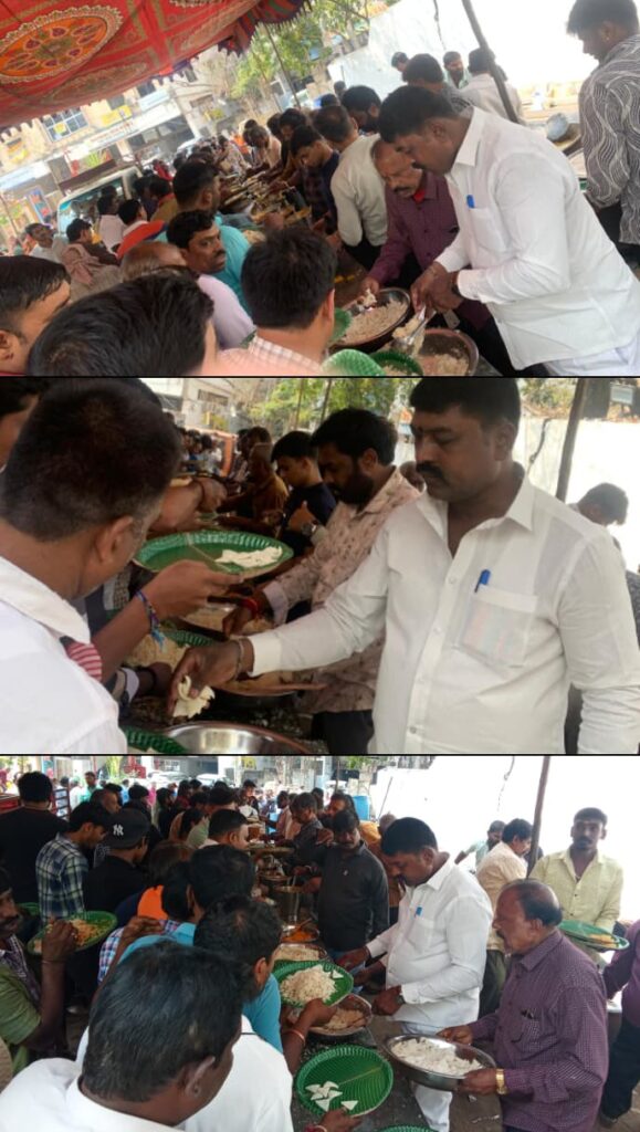 ఆంధ్ర ప్రదేశ్ ఐటీ శాఖ మంత్రి నారా లోకేశ్ జన్మదినోత్సవాన్ని పురస్కరించుకుని అన్నదానం. చేశారు. సనత్ నగర్ నియోజకవర్గం పరిధి లోని రాంగోపాల్పేట డివిజన్లో టి డి పి నాయకులు మాణిక బండారం రాజు ఆధ్వర్యంలో తెలుగు దేశం పార్టీ నాయకులు కార్యకర్తలు పేదలకు అన్నదానం చేశారు.ఈ కార్యక్రమంలో బాలనర్సింహ, ప్రవీణ్, నర్సింగరావు, మారుతి,భగత్ సింగ్, సాయి, అనిల్, ఉనతాసంరెడ్డి, శంకర్, గౌరీశంకర్ తదితరులు పాల్గొన్నారు.