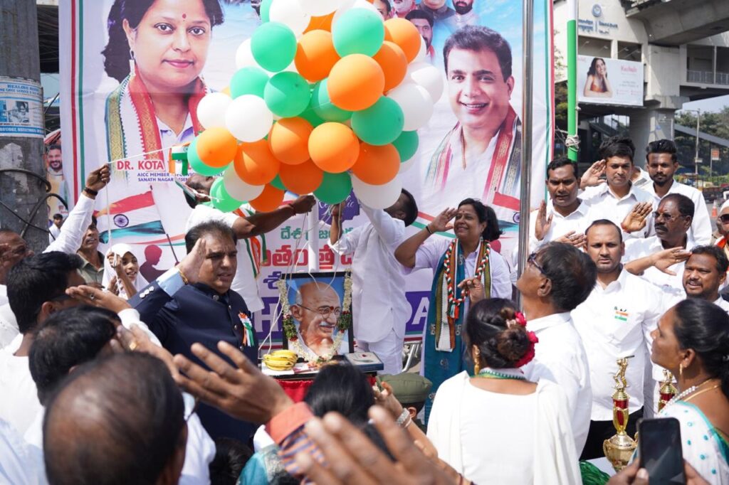 బేగంపేట జనవరి 26 , (జే ఎస్ డి ఎం న్యూస్) : బేగంపేట డివిజన్ పరిధిలోని రసూల్ పుర చౌరస్తాలో కాంగ్రెస్ సీనియర్ నాయకులు విశాల్ సుధాం ఆధ్వర్యంలో గణతంత్ర వేడుకలు ఘనంగా నిర్వహించారు. ఈ కార్యక్రమానికి ముఖ్యఅతిథిగా సనత్ నగర్ నియోజకవర్గం కాంగ్రెస్ పార్టీ ఇంచార్జ్ హోటల్ నీలిమ హాజరయ్యారు. ముందుగా రసూల్పురా చౌరస్తాలో జాతీయ జెండాను కోట నీలిమ ఆవిష్కరించారు. వివిధ క్రీడలలో ప్రతిభ చూపిన వారికి కోట నీలిమ, విశాల్ సుధాం లు బహుమతులను అందజేశారు. డివిజన్ పరిధిలోని ఓల్డ్ కస్టమ్స్ బస్తీ పాటిగడ్డ ప్రకాష్ నగర్ తదితర ప్రాంతాల్లో జాతీయ జెండాలను ఆవిష్కరించి చిన్నారులకు మిఠాయిలు పంచి పెట్టారు. ఈ కార్యక్రమంలో కాంగ్రెస్ పార్టీ నాయకులు మహిళలు చిన్నారులు పాల్గొన్నారు.