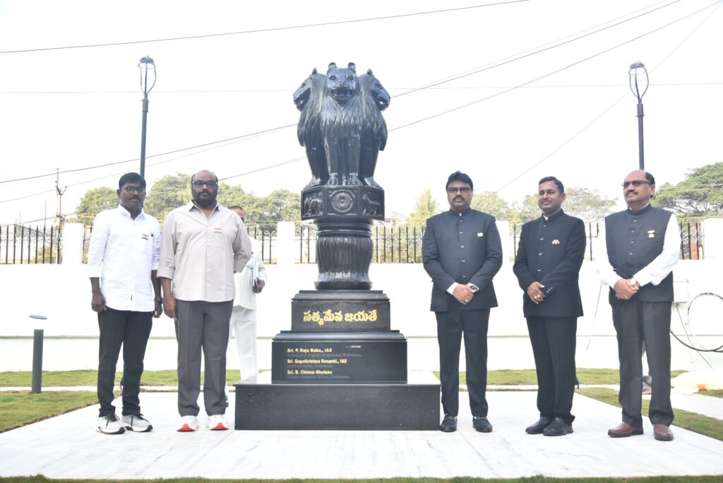 ఒంగోలు కలెక్టరేట్ లోజాతీయ జెండాను ఆవిష్కరించిన జిల్లా కలెక్టర్ ,జాయింట్ కలెక్టర్- నాలుగు సింహాల స్థుపం ఆవిష్కరణ