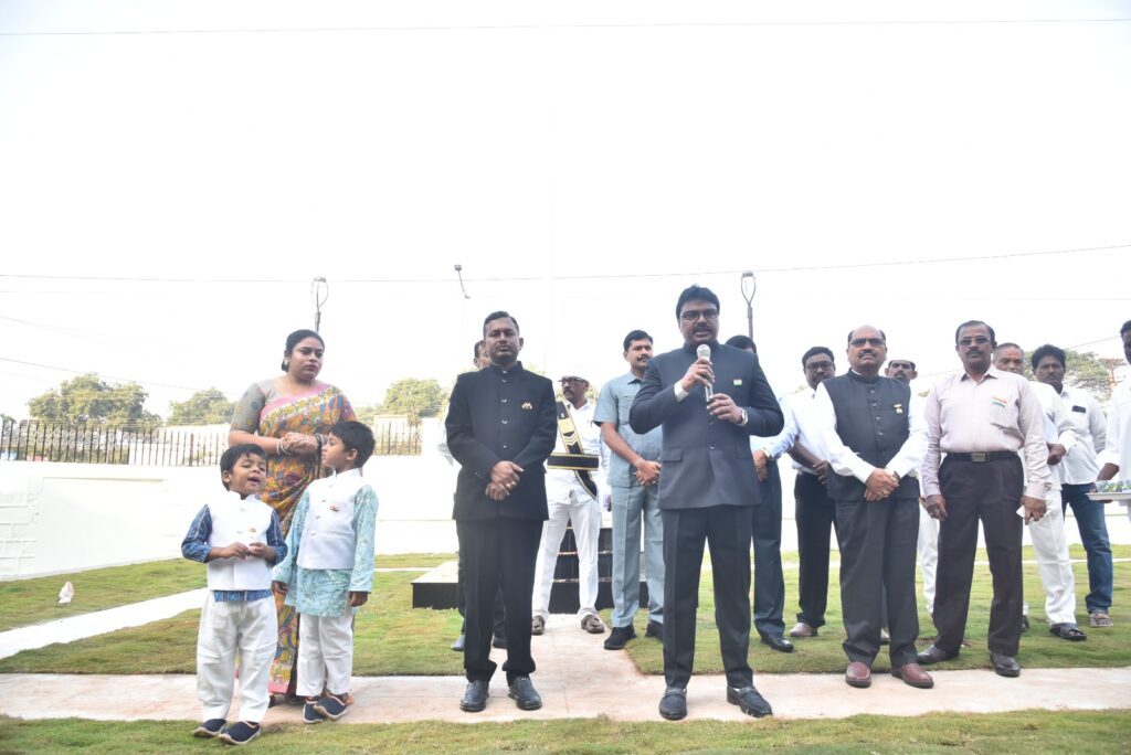 జాయింట్ కలెక్టర్ శ్రీ ఆర్ గోపాల క్రిష్ణ మాట్లాడుతూ, ఈ రోజు 77వ గణతంత్ర దినోత్సవ శుభాకాంక్షలు తెల్పుతూ, మన రాజ్యాంగాన్ని అమలు చేసుకుని నేటికి 76 సంవత్సరాలు పూర్తీ చేసుకుని, 77 సంవత్సరంలోని అడుగుపెట్టామన్నారు. ఈ 76 సంవత్సరాల్లో అనేక రంగాల్లో దేశం గాని, రాష్ట్రంలో గాని, జిల్లా లో గాని అభివృద్ధి పదంలో నడిచిందన్నారు. ఇంకా మనం ఎన్నో మైలు రాళ్ళ ను అందుకోవాల్సి ఉందన్నారు. ఆ దిశగా మనమంతా మహనీయుల త్యాగాలను గుర్తు చేసుకుంటూ జిల్లా సమగ్ర అభివృద్ధికి కృషి చేయాలన్నారు.
