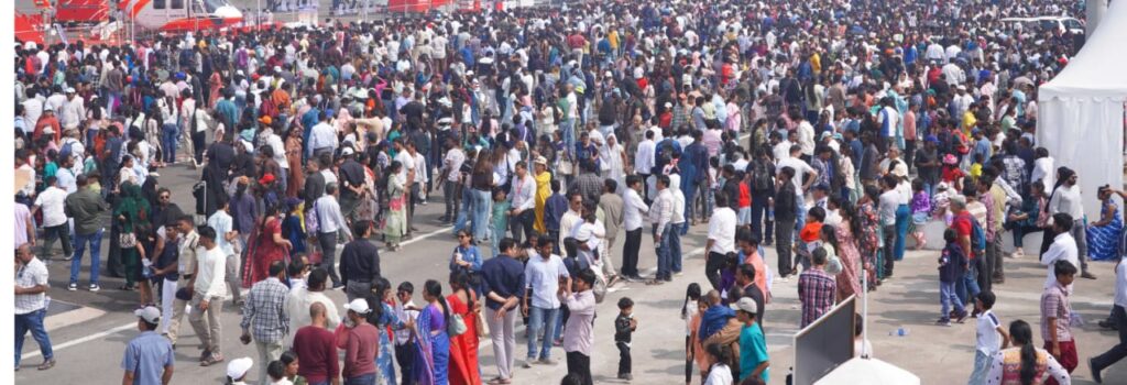 కేవలం చివరి రెండు రోజుల్లోనే 70,000కు పైగా సందర్శకులు ఈ ప్రదర్శనను వీక్షించారు. స్థిర మరియు ఎగిరే విమాన ప్రదర్శనలు, సూర్యకిరణ్ ఏరోబాటిక్ టీమ్ విన్యాసాలు, అంతర్జాతీయంగా ప్రసిద్ధి చెందిన పైలట్ మార్క్ జెఫ్రీస్ వైమానిక ప్రదర్శనలు ఈ భారీ హాజరుకు ప్రధాన కారణంగా నిలిచాయి.
