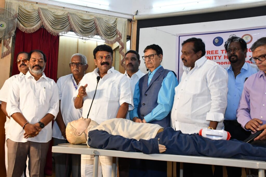 మన ఆరోగ్యం మన చేతుల్లోనే ఉన్నదని మాజీమంత్రి, సనత్ నగర్ ఎమ్మెల్యే తలసాని శ్రీనివాస్ యాదవ్ అన్నారు. ఆదివారం గాంధీ మెడికల్ కాలేజీ ఆవరణలో మెడికల్ కాలేజీ, జనహిత ట్రస్ట్ ఆధ్వర్యంలో ఏర్పాటు చేసిన సీపీ ఆర్ శిక్షణ కార్యక్రమానికి ఆయన ముఖ్య అతిధిగా హాజరై ప్రారంభించారు. ఈ సందర్భంగా ఆయన మాట్లాడుతూ కల్తీ ఆహారం, కలుషితమైన వాతావరణం వలన కూడా వివిధ రకాల ఆరోగ్య సమస్యలు వస్తున్నాయని చెప్పారు. మన ముందు జనరేషన్ వారు ఎలాంటి కల్తీ లేని ఆహారం తీసుకోవడం వలన ఎంతో ఆరోగ్యంగా ఉన్నారని, ఎక్కువకాలం పాటు ఎలాంటి అనారోగ్య సమస్యలు లేకుండా జీవించారని వివరించారు. ప్రస్తుతం మనం కల్తీ ఆహారం తినడం, ఆరోగ్య పరంగా తగు జాగ్రత్తలు తీసుకోకపోవడం వలన పలు రకాల ఆరోగ్య సమస్యలను ఎదుర్కొంటున్నామని చెప్పారు. ప్రస్తుత కాలంలో ప్రధానంగా గుండె సంబంధిత సమస్యలతో బాధపడే వారి సంఖ్య గణనీయంగా పెరిగిన విషయాన్ని గుర్తు చేశారు. గుండెపోటుకు గురైన వారికి తక్షణమే సి పి ఆర్ చేయడం వలన మెరుగైన వైద్యం కోసం ఆసుపత్రికి తరలించే వరకు బ్రతికించే అవకాశాలు ఉంటాయని అన్నారు. CPR పై ప్రతి ఒక్కరూ అవగాహన కలిగి ఉండాలని కోరారు. సి పి ఆర్ పై ఉచిత శిక్షణ నిర్వహించడం పట్ల నిర్వాహకులను అభినందించారు.