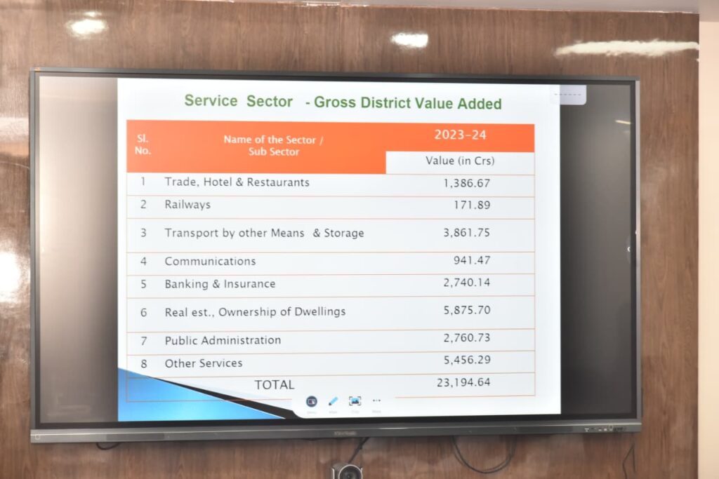 ఉమ్మడి ప్రకాశం జిల్లా ప్రజల తలసరి ఆదాయం రూ.రెండు లక్షల 16 వేల 305 లు ఉందన్నారు. వికసిత్ భారత్-2047, స్వర్ణాంధ్రప్రదేశ్ విజన లక్ష్యంతో ప్రకాశం జిల్లా ముందుకు వెళ్తున్నామన్నారు. రామాయపట్నం పోర్టు నిర్మాణంతో రానున్న రోజుల్లో ప్రకాశం జిల్లా పారిశ్రామిక హబ్ గా మారనున్నదన్నారు. జిడివి 59,289.65 కోట్లు కాగా అందులో వ్యవసాయ దాని అనుబంధ రంగాల సెక్టార్ వాటా 25,437.59 కోట్లు, పరిశ్రమల సెక్టార్ వాటా 10,653.82 కోట్లు, సర్వీస్ సెక్టార్ వాటా 23,198.23 కోట్ల రూపాయలని జిల్లా కలెక్టర్ వివరించారు. వెలుగొండ ప్రాజెక్ట్ నిర్మాణానికి రాష్ట్ర ప్రభుత్వం అత్యంత ప్రాధాన్యత ఇచ్చి ఈ సంవత్సరంలో పూర్తీ చేసేలా అన్నీ చర్యలు తీసుకోవడం జరుగుచున్నదన్నారు. వెలుగొండ ప్రాజెక్ట్ నిర్మాణం పూర్తీ అయితే పశ్చిమ ప్రకాశం ప్రాంతం ఎంతో పురో