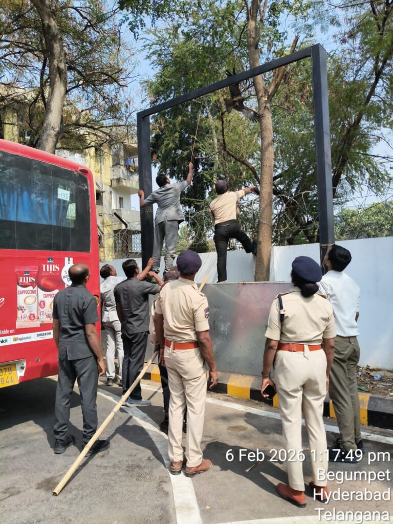 చైనా మంజా కు చిక్కుకుని విల విల లాడుతున్న గద్ద ను రక్షించి ప్రాణదానం చేసిన మల్కాజ్ గిరి ట్రాఫిక్ ఉప కమీషనర్, ఎసిపి.