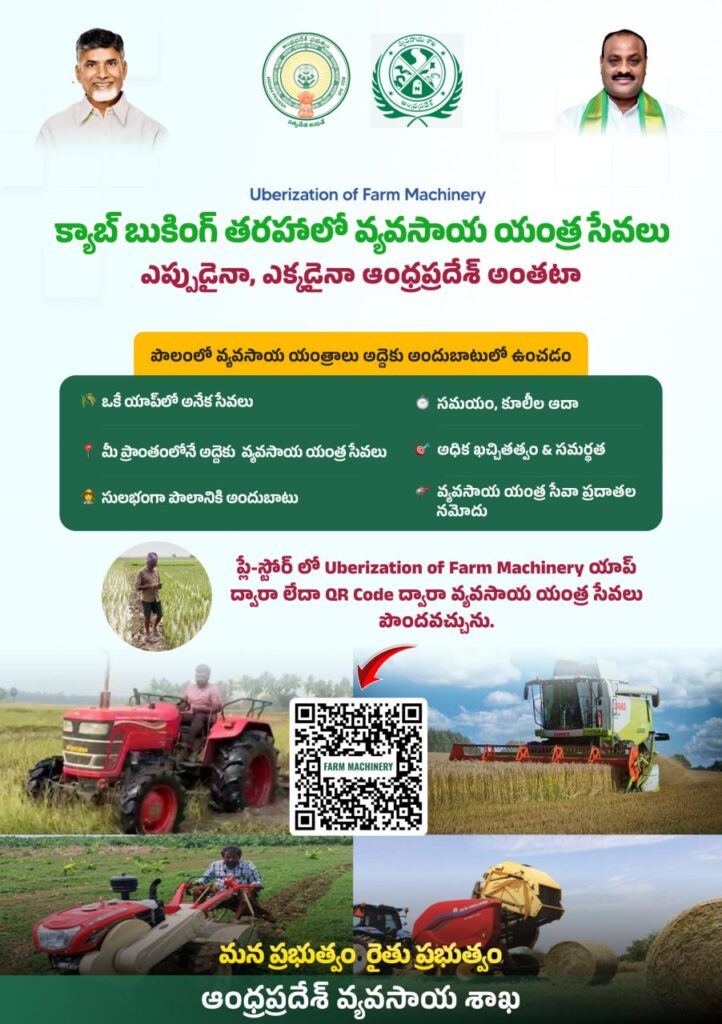 డౌన్ లోడ్ చేసుకుని ఈ సేవలు పొందవచ్చని చెప్పారు. జిల్లా అంతటా క్యాబ్ బుకింగ్ తరహాలో డ్రోన్ సేవలు అందించనున్నట్లు చెప్పారు. ఆయా ప్రాంతాలలో రైతులు అద్దెకు ఈ యాప్ ద్వారా డ్రోన్లు మరింత అందుబాటులోనికి రానున్నాయి. జిల్లాలో గత ఏడాది 80శాతం రాయితీపై 44 డ్రోన్లు జిల్లా అంతటా పంపిణీ చేసినట్లు చెప్పారు. రైతులలో ఒకరిని పైలెట్గా ఎంపిక చేసి ప్రత్యేక శిక్షణ ఇచ్చినట్లు తెలిపారు. ఈ పైలెట్స్ పొలాలలో సస్యరక్షణ మందులు పిచిచారి ఎరువులు విత్తనాలు చల్లటానికి దీనికి వినియోగిస్తున్నారని చెప్పారు. డ్రోన్ నిర్వాహకులు ఎకరానికి అద్దె వసూలు చేస్తారని చెప్పారు. డ్రోన్ ద్వారా పది నిముషాలలోనే ఒక ఎకరానికి పిచికారి చేయవచ్చని చెప్పారు. రైతుల లోకేషన్ ఆధారంగా సమీపంలోని డ్రోన్లను యాప్ ద్వారా చూపిస్తుందని తెలిపారు. గ్రామాలలో రైతు సేవా కేంద్రాలలో గోడ పత్రాలపై ఉన్న క్యూ ఆర్ కోడ్న స్కాన్ చేయటం ద్వారా డ్రోన్లను బుక్ చేసుకోవచ్చని చెప్పారు. సమయం ఆదా అవటంతో పాటు కూలీల సమస్యను అధిక మించవచ్చని చెప్పారు. ఈ డ్రోన్ సేవలు వినియోగంపై ప్రతి మండలంలో అవగాహన సదస్సులు నిర్వహించుటకు ఏర్పాట్లు చేస్తున్నట్లు వివరించారు.