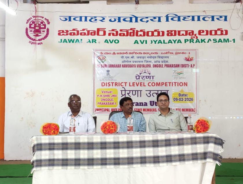 ఒంగోలు నవోదయ విద్యాలయంలో సోమవారం జిల్లా స్థాయిలో ప్రేరణ ఉత్సవ్ కార్యక్రమం నిర్వహించారు. నవోదయ ప్రిన్సిపాల్ సి శివ రామ్, కేంద్రయ విద్యాయ ప్రిన్సిపాల్ ఎం మనీష్ కుమార్లు ముఖ్య అతిథులుగా పాల్గొన్నారు. ప్రిన్సిపాల్ శివ రామ్ మాట్లాడుతూ విద్యార్థులు సృతనాత్మకత, కళలు, నాయ కత్వ లక్షణాలు , సంస్కృతి, వారసత్వం లక్షణాలను పెంపొందించుకోవాలని అన్నారు. ప్రేరణ ఉత్సవంలో బాగంగా కళలు, చిత్ర లేఖనం, వ్యాస రచన, గాణ కచేరి పోటీలను నిర్వహించారు. పీఎం నరేంద్రమోదీ నేతృత్వంలో న్యూ ఎడ్యుకేషన్ పాలసీ 2020 ప్రకారం నేర్చుకోవటానికి అధిక ప్రాధాన్యతను ఇచ్చారని అన్నారు. ప్రేరణ ఉత్సవంలో ఒక బాలుడిని, బాలికను ఎంపిక చేస్తామని చెప్పారు. 50 మంది విద్యార్థులు పాల్గొనగా 30 మంది విద్యార్థులు అందులో 15 మంది బాలురు, 15 మంది బాలికలు ఎంపికయినట్లు తెలిపారు. జిల్లాలోని వివిధ పాఠశాలకు చెందిన ప్రధానోపాధ్యాయులు, ఉపాధ్యాయులు పాల్గొన్నారు.