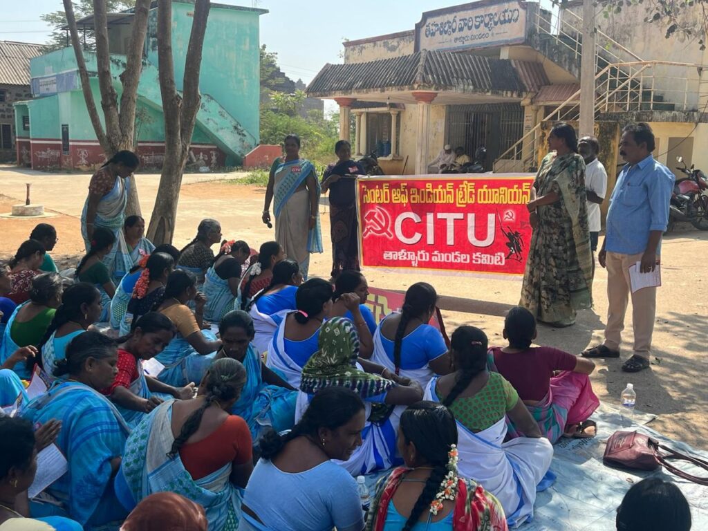 పోరాడి సాధించుకున్న కార్మిక హక్కులను కాలరాస్తే చూస్తూ ఊరుకోబోమని వామ పక్ష సంఘాలు హెచ్చరించాయి. తాళ్లూరులో సీఐటీయూ ఆధ్వర్యంలో అంగన్ వాడీ, అశ, పంచాయితీ యూనియన్లు తహసీల్దార్ కార్యాలయం వద్ద నిరసన వ్యక్తం చేసారు. అనంతరం ర్యాలీగా వెళ్లి మానవ హారం ఏర్పాటు చేసారు. ఆమెరికా వాణిజ్య ఓప్పదాల వలన వ్యవసాయ రంగానికి హాని చేస్తే తీవ్ర పరిణామాలు ఉంటాయని సీఐటియు నాయకురాలు కల్పన హెచ్చరించారు. 29 కార్మిక చట్టాలను రద్దు చేసి వాటి స్థానంలో నాలుగు లేబర్ కోడ్లు తేస్తే ఉద్యోగ భద్రత లేకుండా చేస్తే ఊరుకోబోమని ట్రెడ్ యూనియన్, రైతు సంఘ, కార్మిక సంఘ నాయకులు హెచ్చరించారు. ఆయా సంఘాలు నాయకులు రామా రావు, రమణ పాల్గొన్నారు.