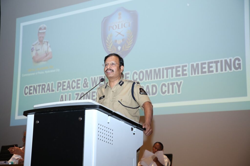నిర్వహించేలా చర్యలు తీసుకుంటామని తెలిపారు. ఈ సమావేశంలో సభ్యులు ఇచ్చిన పలు సలహాలు, సూచనలను పరిగణనలోకి తీసుకుంటామని హామీ ఇచ్చారు. శాంతి భద్రతల పరిరక్షణ కోసం ప్రతి ఒక్కరూ నిరభ్యంతరంగా తమకు సలహాలు ఇవ్వవచ్చని పేర్కొన్నారు.ఈ సమావేశంలో అడిషనల్ సీపీ తఫ్సీర్ ఇక్బాల్, జాయింట్ సీపీలు డి. జోయల్ డేవిస్, ఎస్.ఎం. విజయ్ కుమార్, ఎన్. శ్వేత తో పాటు పలు జోన్ల డీసీపీలు రక్షిత కృష్ణ మూర్తి, ఖరే కిరణ్ ప్రభాకర్, శిల్పవల్లి,ఎ. రమణా రెడ్డి, బి. రాజేష్, జి. చంద్ర మోహన్, ఎస్. శ్రీనివాస్, ట్రాఫిక్ డీసీపీలు రాహుల్ హెడ్గే, కాజల్, అవినాశ్ కుమార్ లు పాల్గొన్నారు.