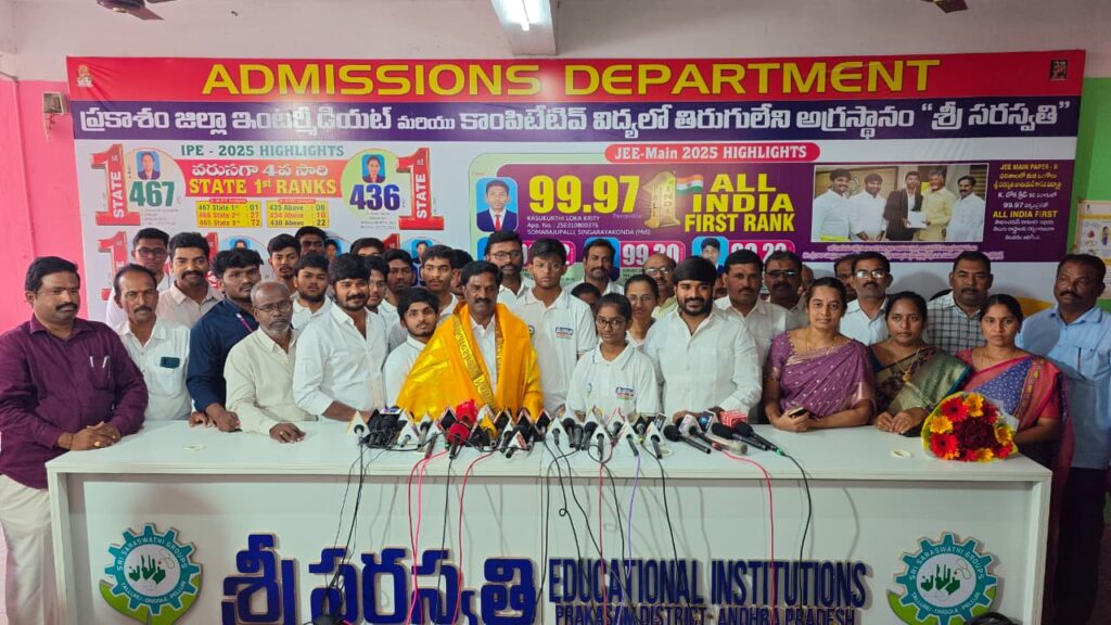 సంకల్పం, సిస్టమ్యాటిక్ ప్రిపరేషన్, స్మార్ట్ టెస్టింగ్ స్టాటజీలతో శ్రీ సరస్వతి ఆకాడమిక్ ప్రోగాం జరుగుతుందని అందుకు నిదర్శంన ఈ ఫలితాలు అని చెప్పారు. 90 పర్సంటైన్ పైన సాధించిన విద్యార్థులు 21 మంది, 85 పర్సంటైల్ సాధించిన విద్యార్థులు 47 మంది, 80 పర్సంటైల్ సాధించిన విద్యార్థులు 77 మంది, జెఈఈ అడ్వాన్స్ -2026లో క్వాలిఫైకు అవకాశం ఉన్న విద్యార్థులు 165 మంది వరకు ఉన్నట్లు వివరించారు. విద్యార్థులు అందరికి ప్రత్యేక అభినందనలు చెప్పారు.