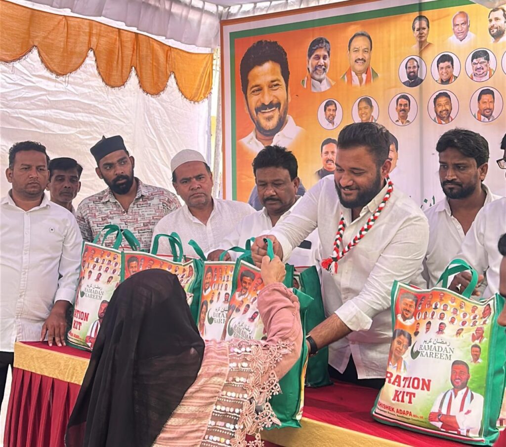 రంజాన్ పర్వదినాన్ని పురస్కరించుకుని పేదలకు 100 రేషన్ కిట్లను కాంగ్రెస్ నాయకుడు అభిషేక్ అడపా ఆధ్వర్యంలో పంపిణీ చేశారు.సనత్ నగర్ నియోజకవర్గం పరిధిలోని బేగంపేట డివిజన్ ఓల్డ్ కస్టమ్స్ బస్తీలో కాంగ్రెస్ నాయకులు ఈ కార్యక్రమాన్ని నిర్వహించారు.ఈ సందర్భంగా అభిషేక్ అడపా మాట్లాడుతూ తమ నాయకురాలు కోట నీలిమ నేతృత్వంలో కాంగ్రెస్ పార్టీ బలోపేతానికి కృషి చేస్తానన్నారు.రంజాన్ పవిత్ర మాసంలో ముస్లీం సోదరులు ఎంతో పవిత్రంగా ప్రార్థనలు చేస్తూ ఉపవాస (రోజా)చేస్తారని అన్నారు.