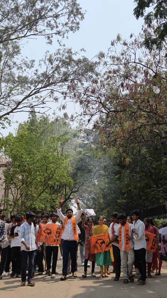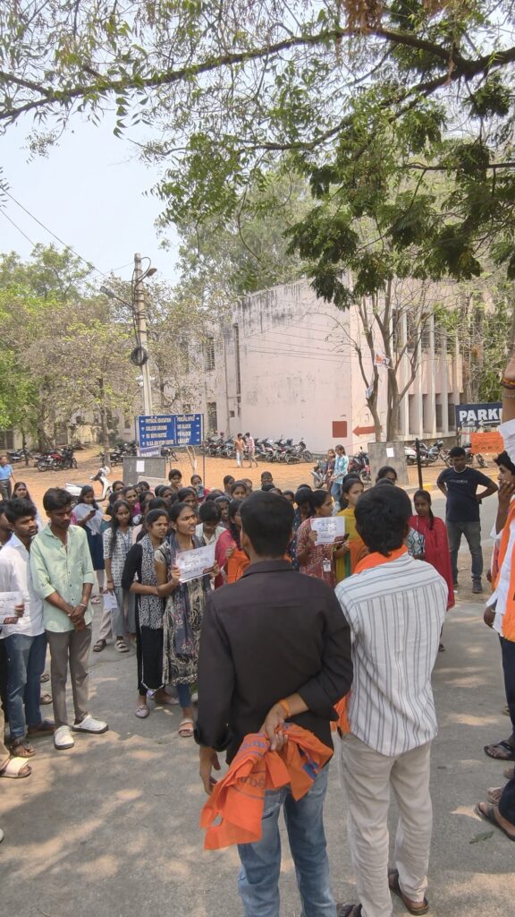 విద్యాశాఖకు ఇప్పటివరకు పూర్తిస్థాయి మంత్రి లేకపోవడంతో విద్యారంగానికి సంబంధించిన అనేక కీలక నిర్ణయాలుఆలస్యమవుతున్నాయని పేర్కొన్నారు. వెంటనే విద్యాశాఖమంత్రిని నియమించి విద్యారంగ సమస్యలనుపరిష్కరించేందుకు చర్యలు తీసుకోవాలని కోరారు. లేదంటే రాష్ట్రవ్యాప్తంగా విద్యార్థులతో కలిసి పెద్ద ఎత్తునఆందోళనలు నిర్వహించాల్సి వస్తుందని హెచ్చరించారు. కార్యక్రమంలో రాష్ట్ర కార్యవర్గ సభ్యుడు గౌతమ్,బేగంపేట్ టౌన్ సెక్రటరీ పవన్,పీజీ కాలేజీ ప్రెసిడెంట్ అభి, సెక్రటరీ పుండలీక్,శివరాజ్, వెంకట్,రమన్, చెన్నాయ, ఫారహన్ నాయకులు పాల్గొన్నారు.