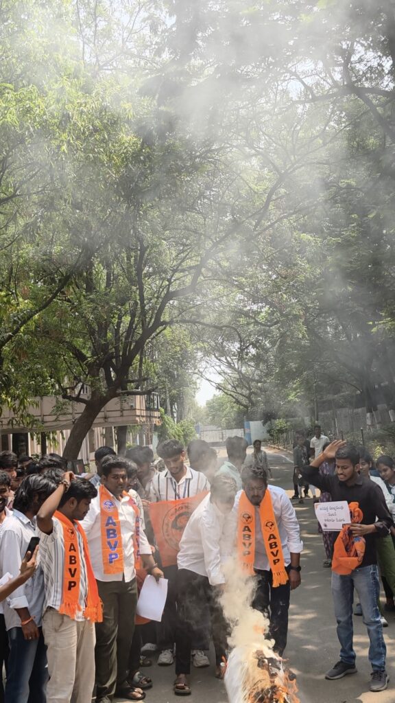 విద్యార్థులకు ఇచ్చే స్కాలర్ షిప్ బిక్ష కాదని అఖిల భారతీయ విద్యార్థి పరిషత్ సికింద్రాబాద్ జిల్లా కన్వీనర్ బాలకృష్ణ అన్నారు. మంగళవారం పీజీ కళాశాల లో అఖిల భారతీయ విద్యార్థి పరిషత్ సికింద్రాబాద్ జిల్లా ఆధ్వర్యంలో రాష్ట్ర ప్రభుత్వం దిష్టిబొమ్మ దగ్ధం చేశారు. ఈ సందర్భంగా బాలకృష్ణ మాట్లాడుతూ కేంద్రంలో పెండింగ్ లో ఉన్న 9,500 కోట్ల స్కాలర్షిప్, ఫీజు రియింబర్స్మెంట్ వెంటనే విడుదల చేయాలని డిమాండ్ చేశారు.రాష్ట్ర ప్రభుత్వం అధికారంలోకి వచ్చి రెండున్నర సంవత్సరాలు గడుస్తున్న విద్యార్థులకు స్కాలర్షిప్ ఇవ్వకపోవడం సిగ్గుచేటన్నారు.విద్యారంగానికి కనీసం 15శాతం బడ్జెట్ కేటాయించాలని డిమాండ్ చేశారు. మార్చి 20న ప్రారంభమయ్యే అసెంబ్లీ సమావేశాల్లో బడ్జెట్ కేటాయించాలని కోరారు. విద్యను బలోపేతం చేయకుండా రాష్ట్ర అభివృద్ధి సాధ్యం కాదన్నారు. రాష్ట్రంలో విద్యార్థులు ఎదుర్కొంటున్న అనేక సమస్యలను ప్రభుత్వం నిర్లక్ష్యం చేస్తోందని ఆందోళన వ్యక్తం చేశారు. విద్యా కమీషన్ నివేదికను తిరస్కరించాలని, పెంచిన ఇంజనీరింగ్ ఫార్మా కళాశాలలలో ఫీజుల పెంపు నిర్ణయాన్ని ప్రభుత్వం వెంటనే ఉపసంహరించుకోవాలనీ