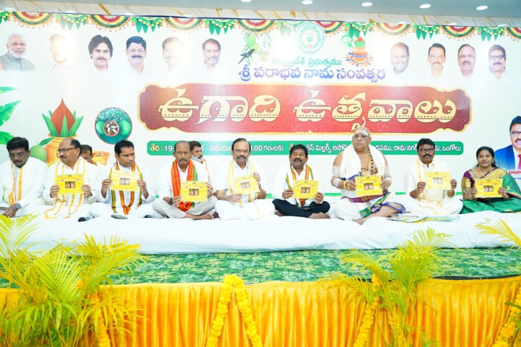 దైవానుగ్రహంతో రాష్ట్రం సుభిక్షంగా ఉండాలని రాష్ట్ర సాంఘిక సంక్షేమ శాఖ మంత్రి డాక్టర్ డోలా బాల వీరాంజనేయ స్వామి ఆకాంక్షించారు. శ్రీపరాభవ నామ సంవత్సర ఉగాది వేడుకలు గురువారం ఒంగోలులోని రైస్ మిల్లర్స్ అసోసియేషన్ హాలులో ప్రభుత్వ ఆధ్వర్యంలో ఘనంగా జరిగాయి. మంత్రితోపాటు జిల్లా కలెక్టర్ పి.రాజాబాబు దంపతులు, ఎంపీ మాగుంట శ్రీనివాసులు రెడ్డి, సంతనూతలపాడు శాసనసభ్యులు బి.ఎన్.విజయ్ కుమార్, జిల్లా గ్రంథాలయ సంస్థ చైర్ పర్సన్ ముప్పవరపు సుచిత్ర, ఇతర ప్రముఖులు ఈ వేడుకల్లో పాల్గొన్నారు. మంగళ వాయిద్యాలతో అధికారులు వీరికి స్వాగతం పలుకగా, ప్రముఖ వేద పండితుడు దక్షిణామూర్తి ఈ సంవత్సర పంచాంగాన్ని వివరించారు.