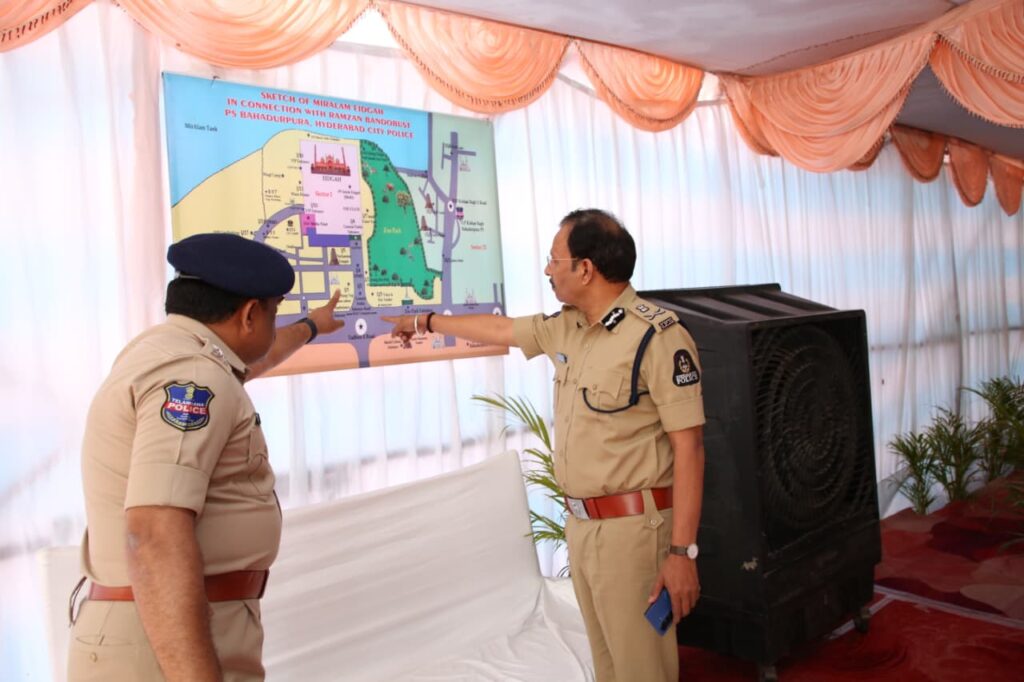 భక్తుల షాపింగ్ అవసరాలకు, ప్రార్థనలకు ఎలాంటి ఇబ్బందులు కలగకుండా ముందస్తుగా అన్ని ఏర్పాట్లు చేశామని, అందరి సహకారంతో వేడుకలు విజయవంతంగా సాగాయని వివరించారు. పండుగ ఏర్పాట్లలో సహకరించిన మత పెద్దలకు, ఇతర ప్రభుత్వ విభాగాలకు ధన్యవాదాలు తెలిపారు. ఈ కార్యక్రమంలో తఫ్సీర్ ఇక్బాల్, (అడిషనల్ సిపి – సౌత్ రేంజ్),డి.జోయల్ డెవిస్ ఐపిఎస్ జాయింట్ సిపి ట్రాఫిక్, ఎన్. స్వేతా, ఐపిఎస్ (జాయింట్ సిపి – నార్త్ రేంజ్), ఆర్.వెంకటేశ్వర్లు ఐపిఎస్ డిసిపి సిఎఆర్ హెడ్ క్వార్టర్స్, ఎస్. శ్రీనివాస్, ఐపిఎస్ (డిసిపి – రాజేంద్ర నగర్ జోన్), అవినాశ్ కుమార్ ఐపిఎస్ డిసిపి ట్రాఫిక్ తదితర పోలీస్ ఉన్నతాధికారులుపాల్గొన్నారు.