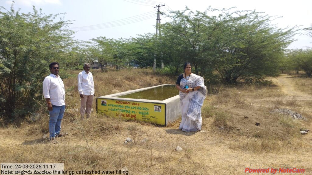 వరమని ఎంపీడీఓ అజిత అన్నారు. వేనతి సమీపిస్తున్న తరుణంలో పశువులకు అవసరమైన నీటి తొట్ల పరిస్థితిని ఎంపీడీఓ మంగళవారం పరిశీలించారు. జిల్లా నీటి యాజమాన్య సంస్థ ఆధ్వర్యంలో మహాత్మాగాంధీ జాతీయ ఉ పాధి హామీ పథకంలో పల్లె పండుగ కార్యక్రమంలో మండలంలో పశువుల నీటి తొట్లు 11 నిర్మించినట్లు ఎంపీడీఓ అజిత తెలిపారు. ఈ నీటి తొట్లకు నీరు ఎప్పుడు నరఫరా ఉండే విధంగా తగిన చర్యలు తీసుకున్నట్లు చెప్పారు. పాడి పరిశ్రమపై ఆధార పడ్డ వేలాది పశుపోషకులకు, జీవాలకు స్వచ్ఛమైన నీరు అందించటమే లక్ష్యంగా పశువులు, జీవాలు దూరం పోకుండా అవి ఎక్కువగా వచ్చే ప్రాంతాలకు గుర్తించి నీటి తొట్టులు నిర్మించినట్లు తెలిపారు. పరిశీలనలో ఎపీఓ వెంకటేశ్వర్లు, సిబ్బంది పాల్గొన్నారు.